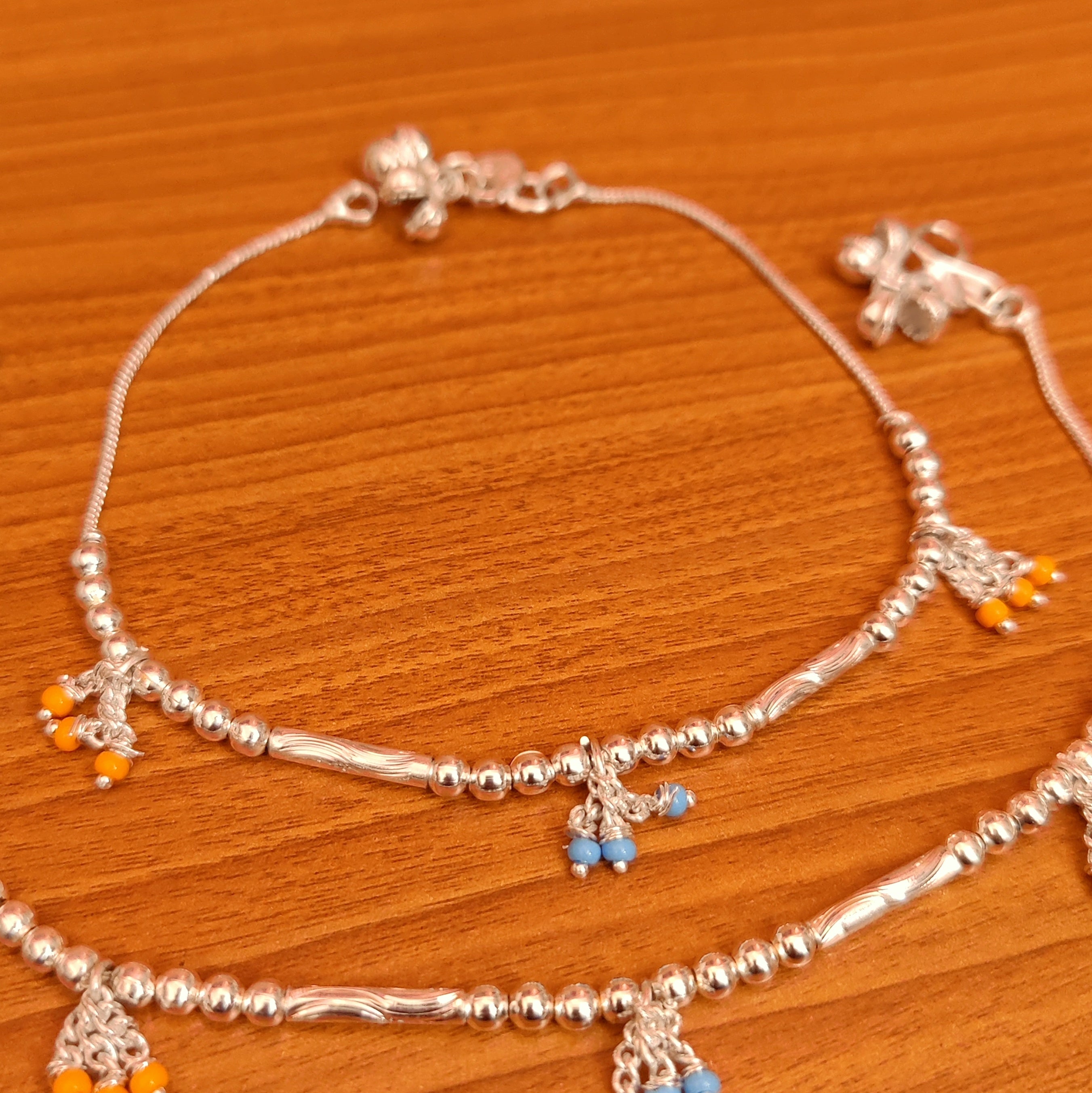 SILVER PLATED TURQUOISE & YELLOW BEADS ANKLETS
