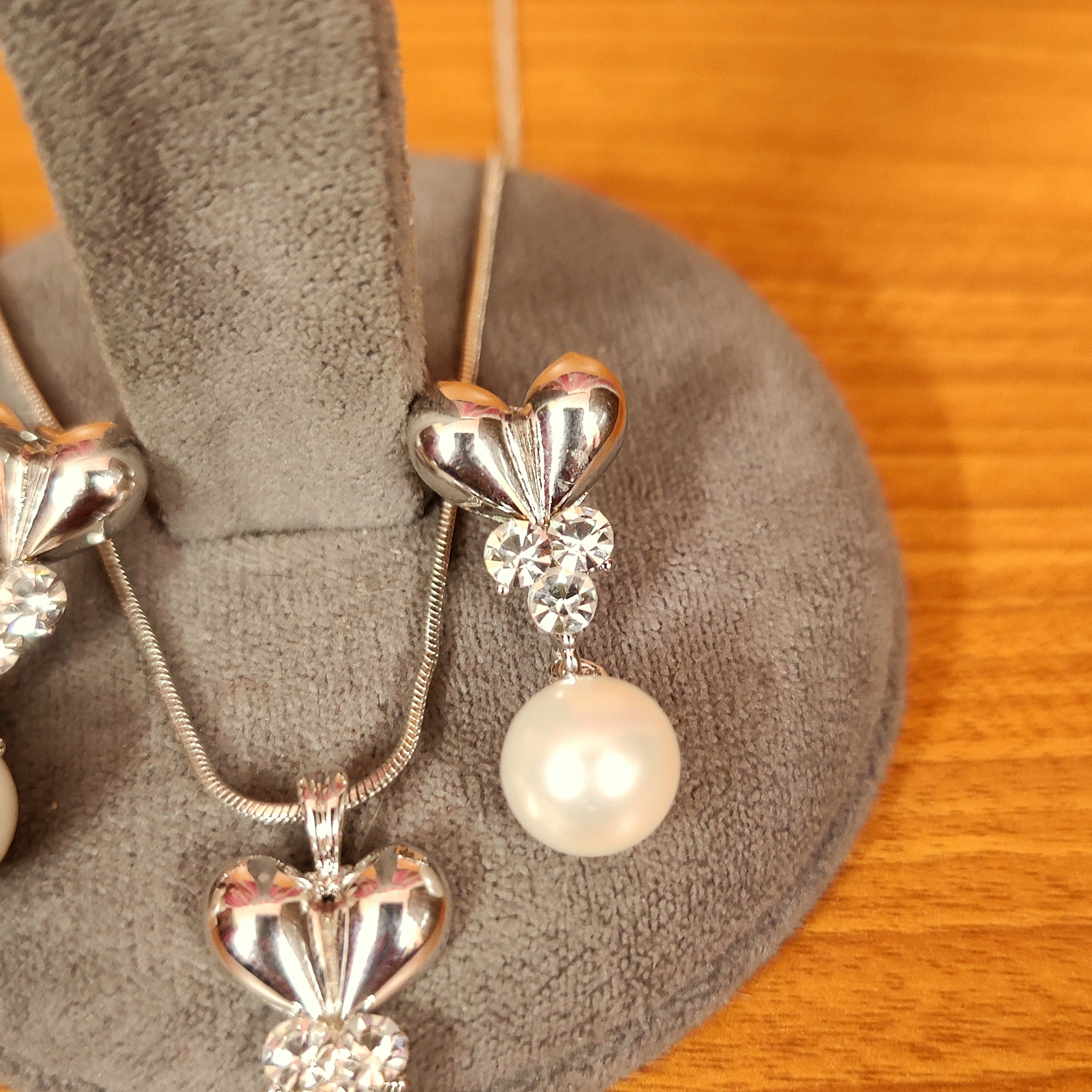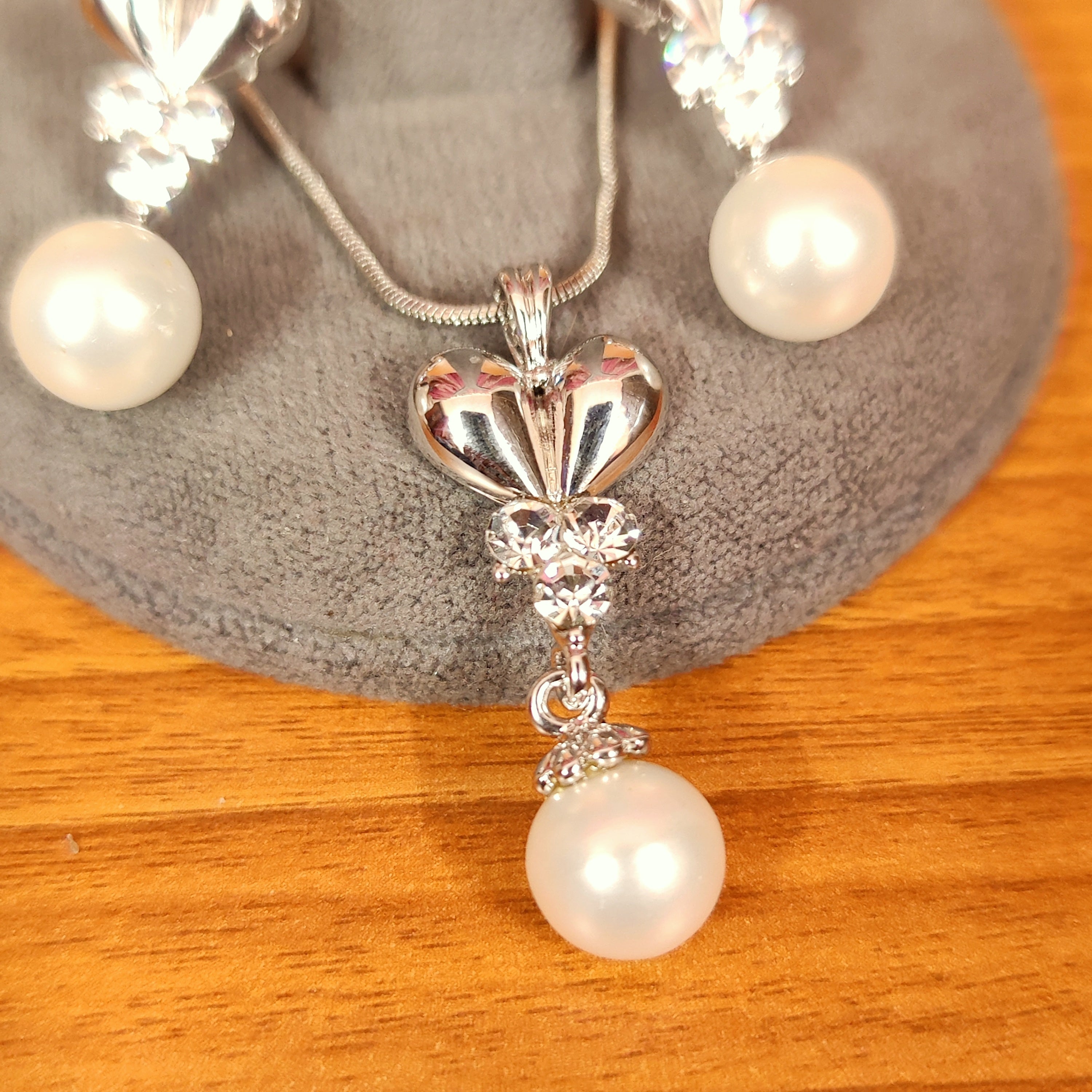 SILVER PLATED HEART SHAPED PEARL PENDANT SET