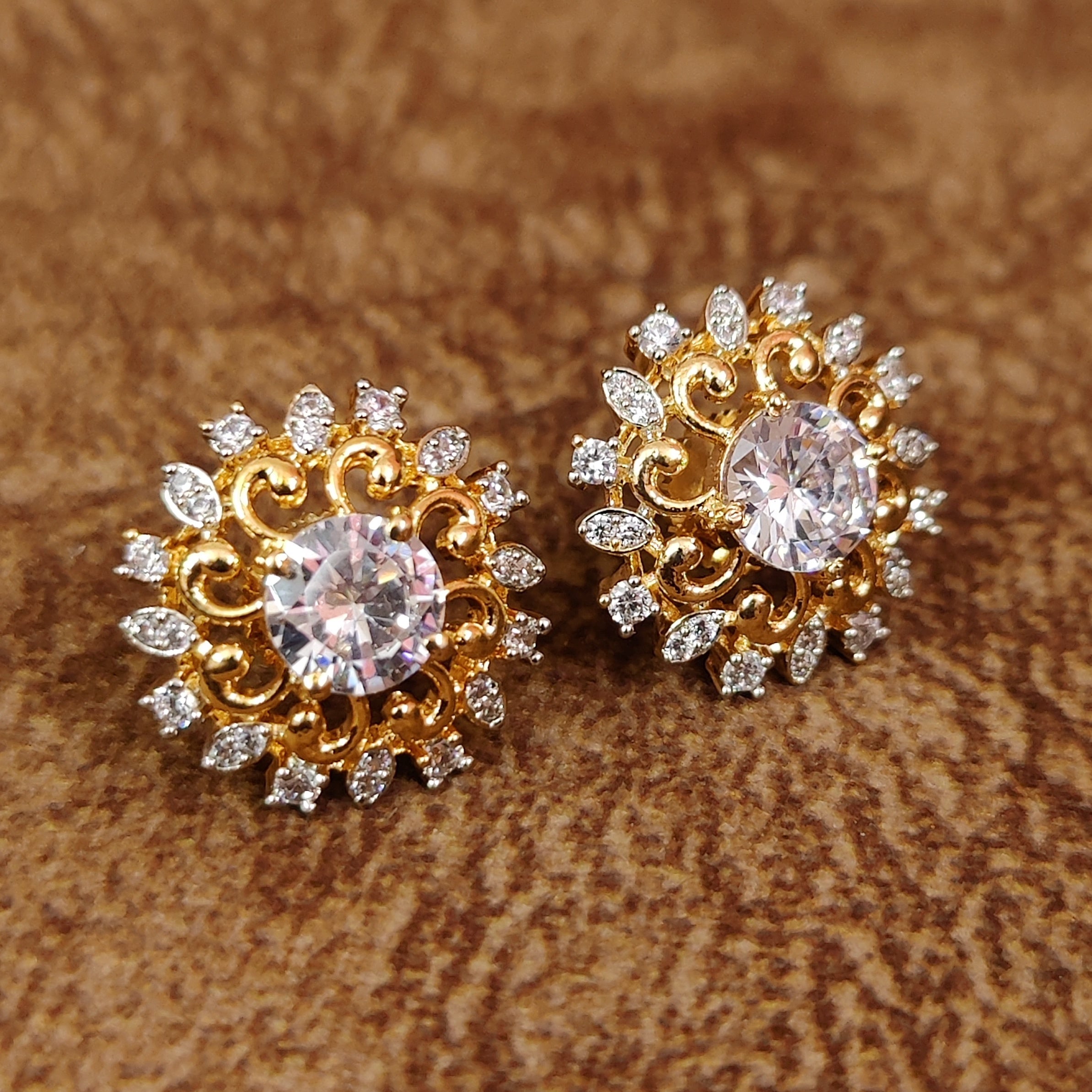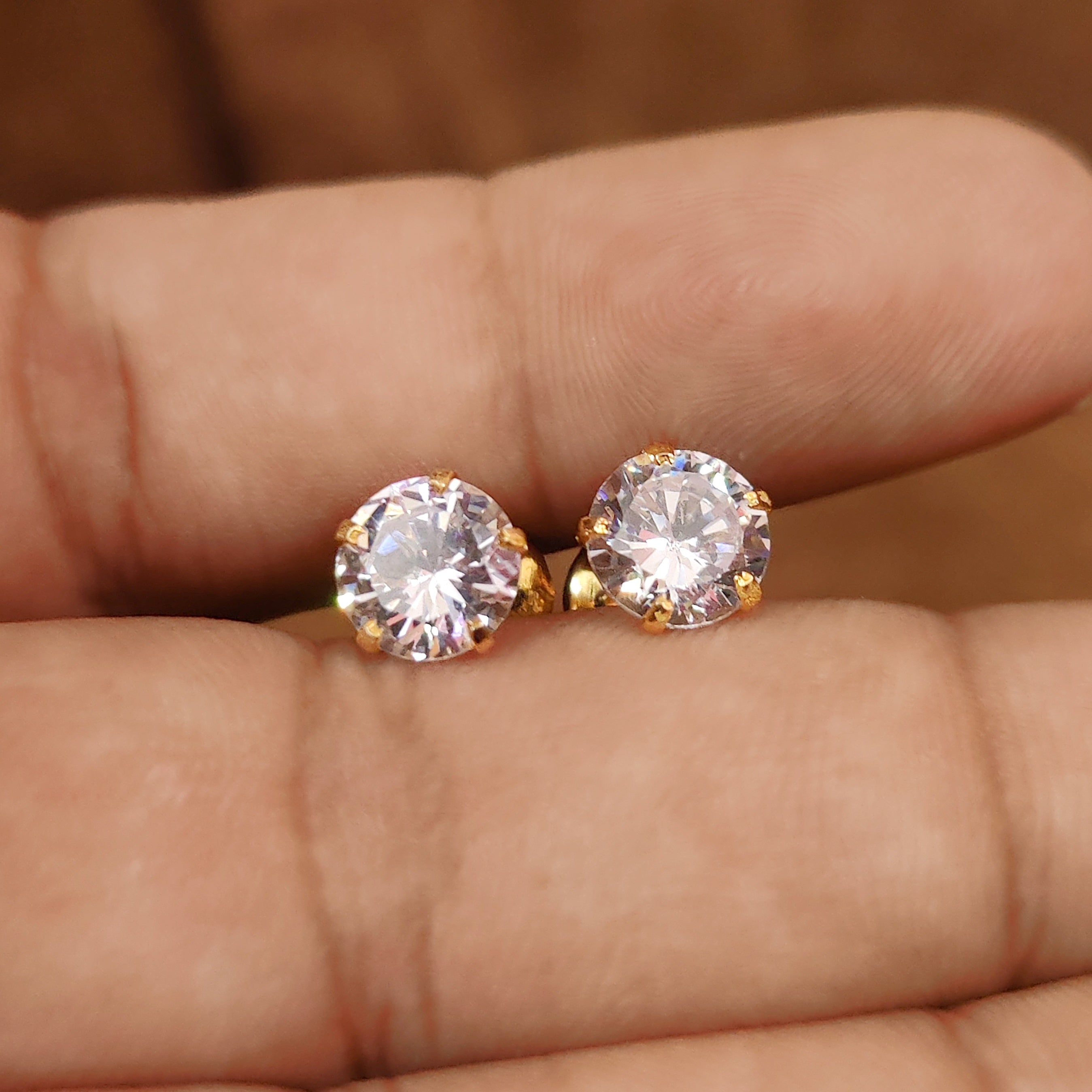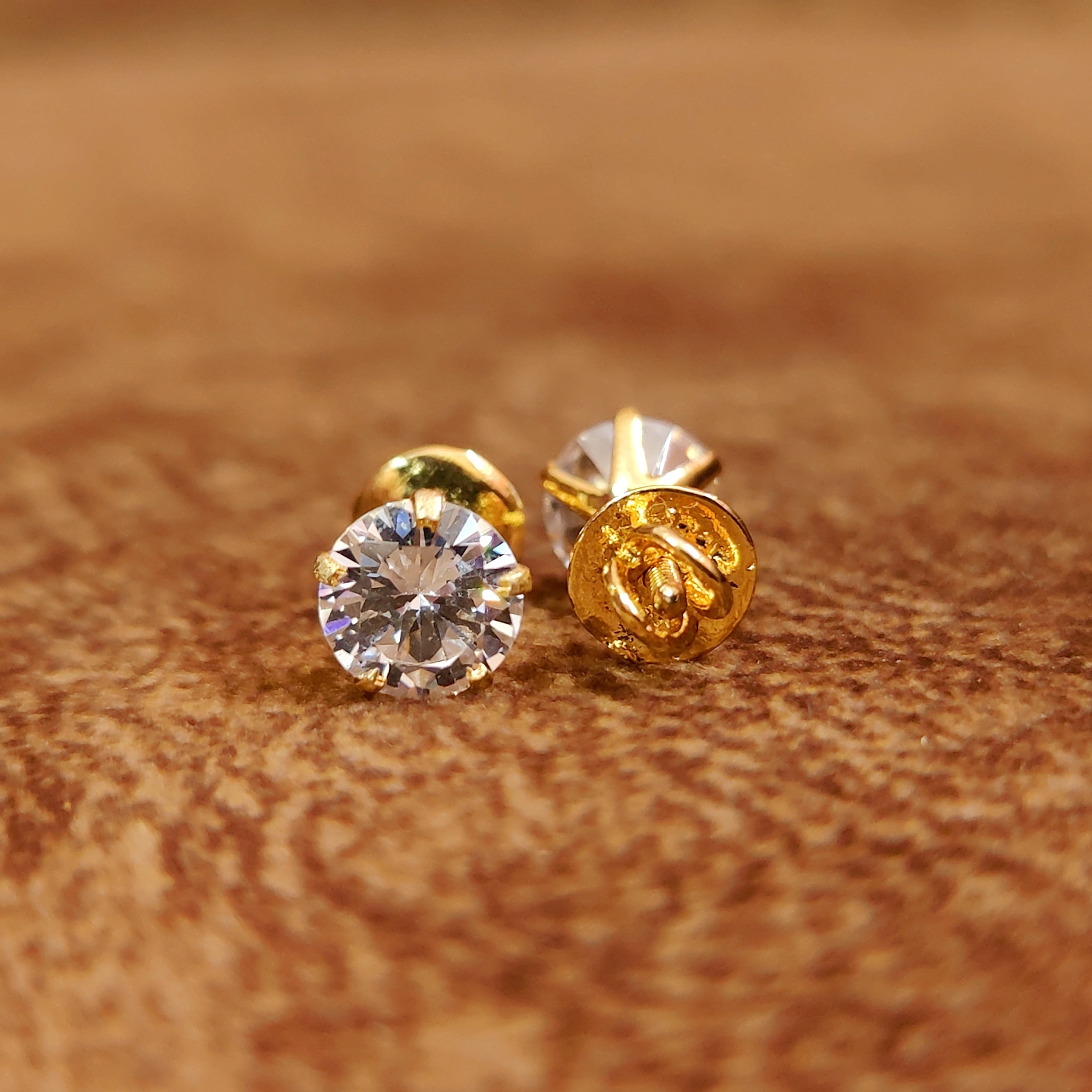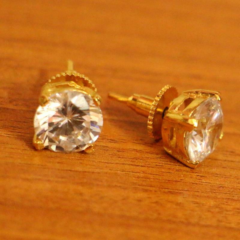 SOLITAIRE LOOK SCREW GOLD PLATED STUDS