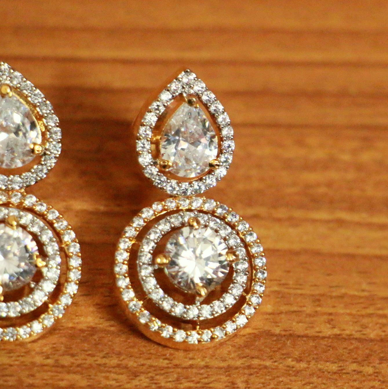 Sparkling Round Solitaire CZ Marquise Mangalsutra Set with Earrings