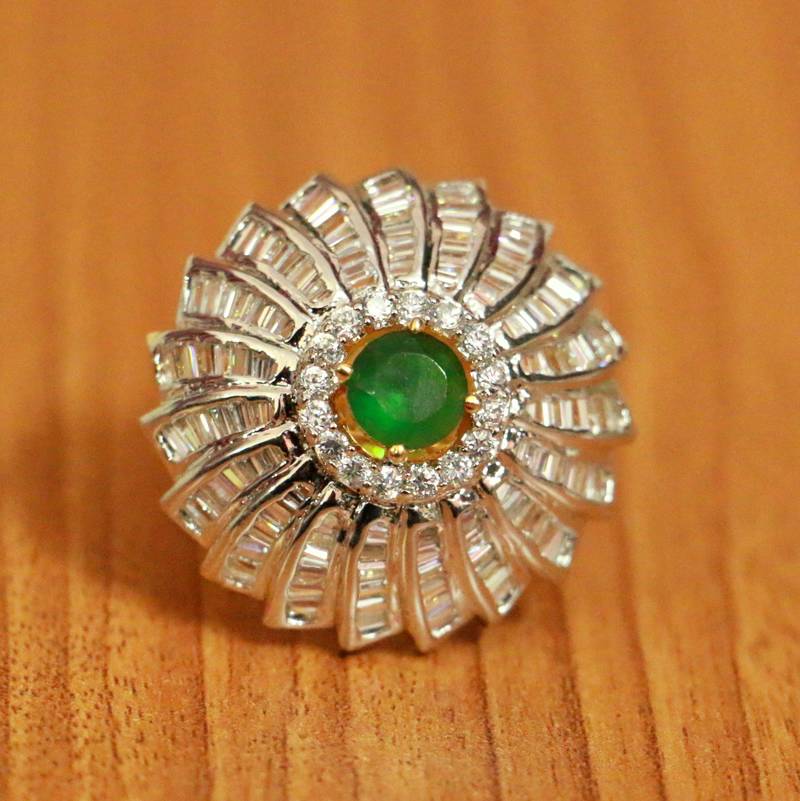 CZ STUDDED EMERALD COLOUR STONE COCKTAIL RING