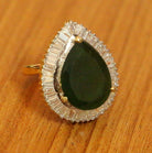 DARK GREEN CZ STUDDED PEAR SHAPED ADJUSTABLE RING