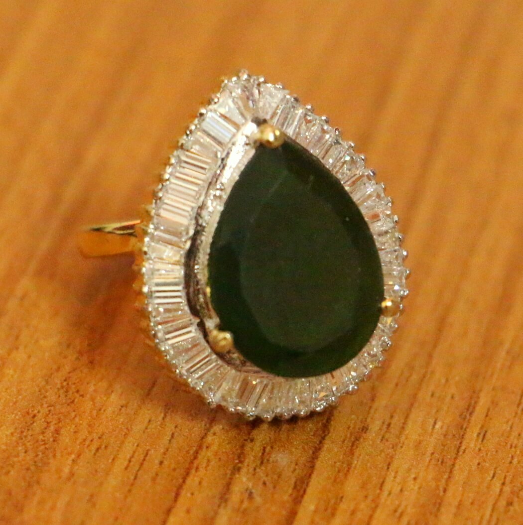 This beautiful ring is handcrafted in brass alloy with imitation green onyx & american diamond work of very fine quality . This ring is coated with 18 kt gold polish which give them a unique look . An absolutely stunning piece to own and are very light in weight.