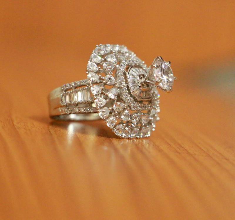 This Diamond Look Cocktail Ring Is Made In Silver Alloy With Fine Cubic Zirconia Stones And Is Plated With White Gold Rhodium To Give It A Real Diamond Look .