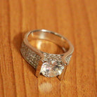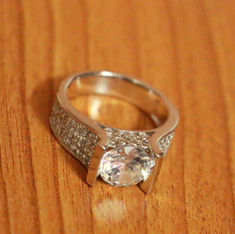 SOLITAIRE LOOK CZ STUDDED SILVER PLATED RING