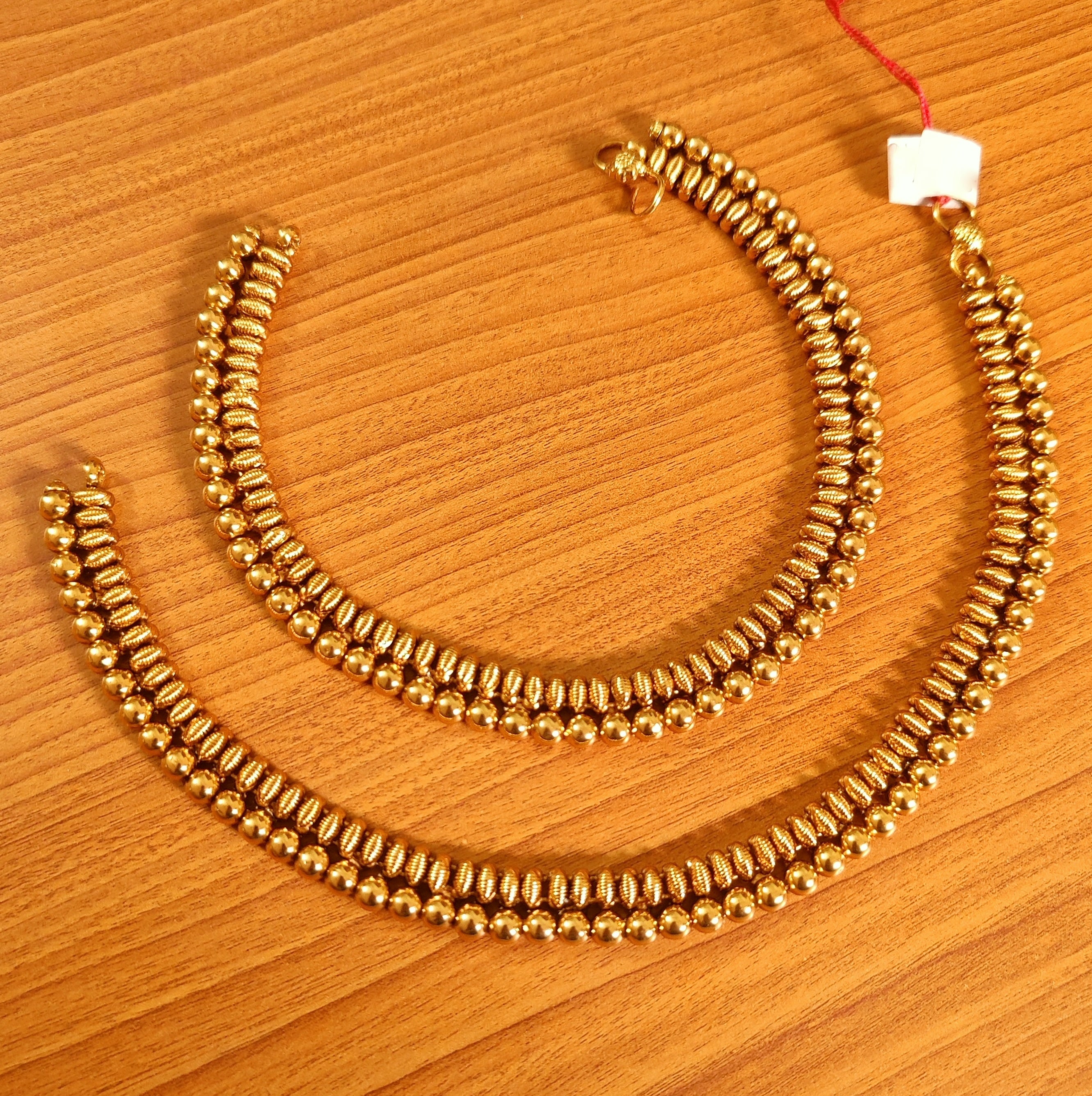ANTIQUE GOLD PLATED POLKI ANKLETS
