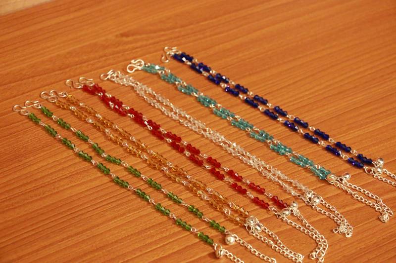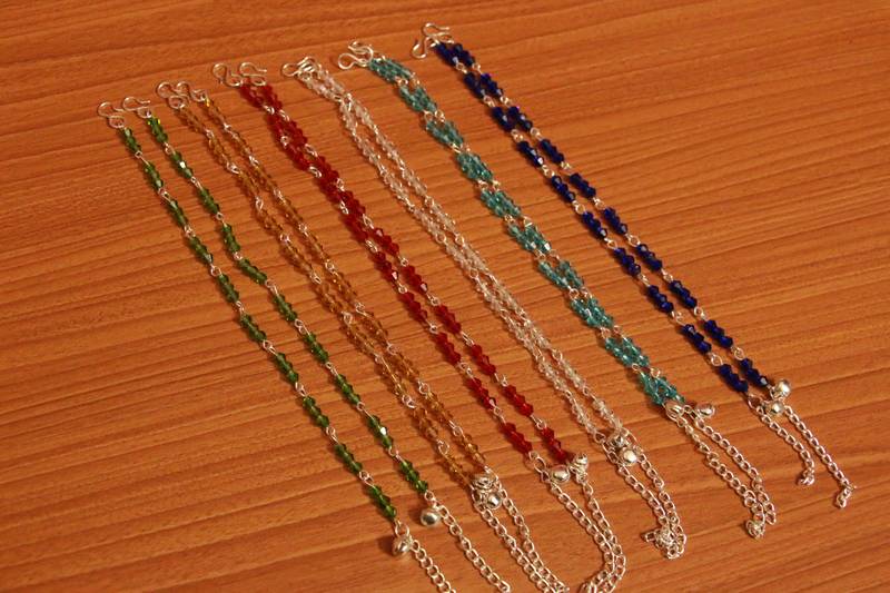 This Combo Of 6 Pair Of Anklets Are Handcrafted In Copper Alloy With Imitation Multicolour Crystal Beads Of Very Fine Quality . These Anklets Are Plated With Silver Polish That Gives A Real Silver Look . An Absolutely Stunning Piece To Own And Are Very Light In Weight.