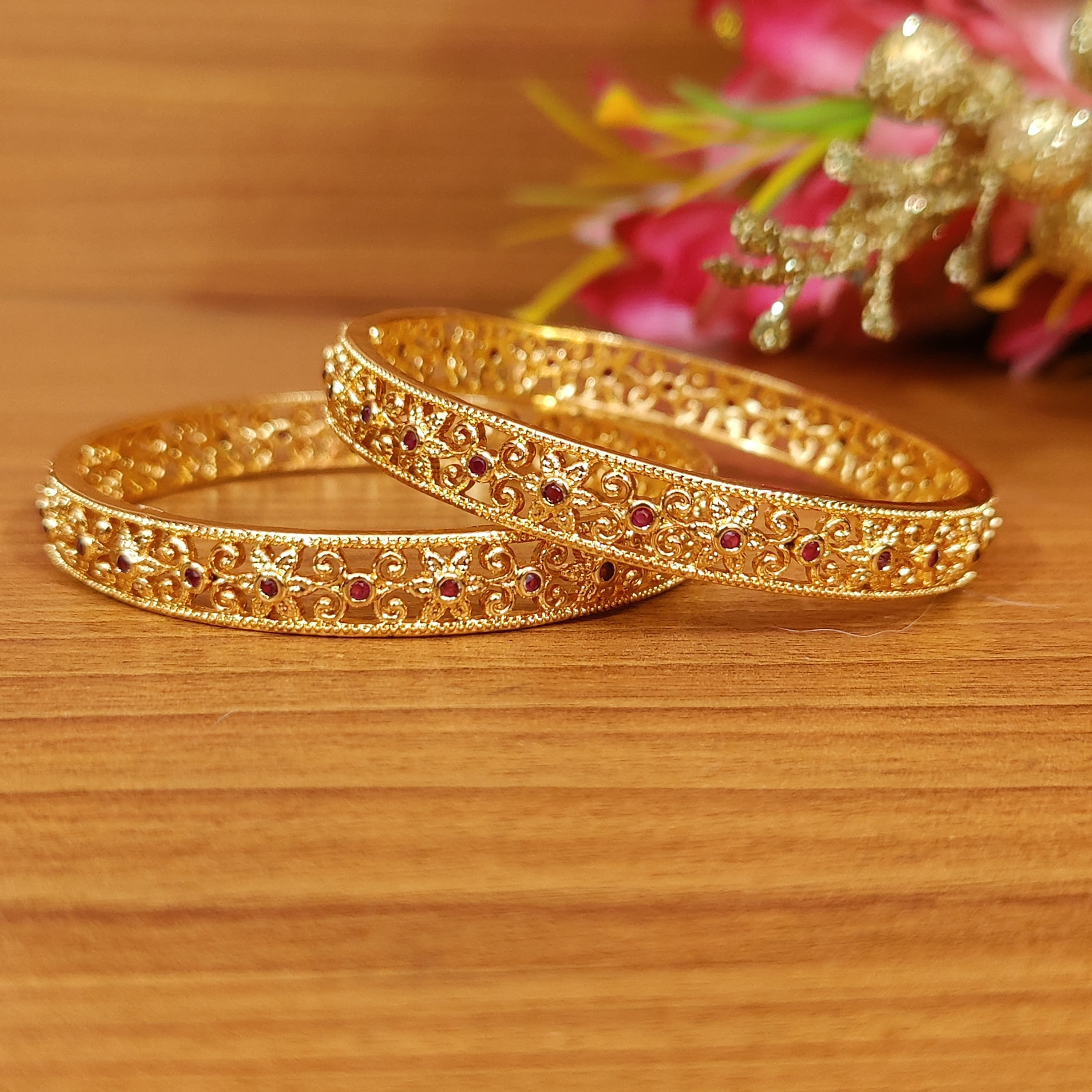 22KT FINISHING GOLD PLATED RED CARVING ARTIFICIAL BANGLES