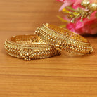 Enhance your traditional look with our Antique Gold-Plated Traditional Ghungroo Bangles, crafted to perfection for the modern woman who appreciates classic charm. Featuring intricate designs and adorned with tiny ghungroos, these bangles offer a vintage aesthetic with a contemporary twist. Made from premium materials with an antique gold plating, they bring a touch of elegance to any outfit, from festive sarees to ethnic ensembles. Designed for durability and comfort, these bangles are a perfect addition to your jewelry collection.