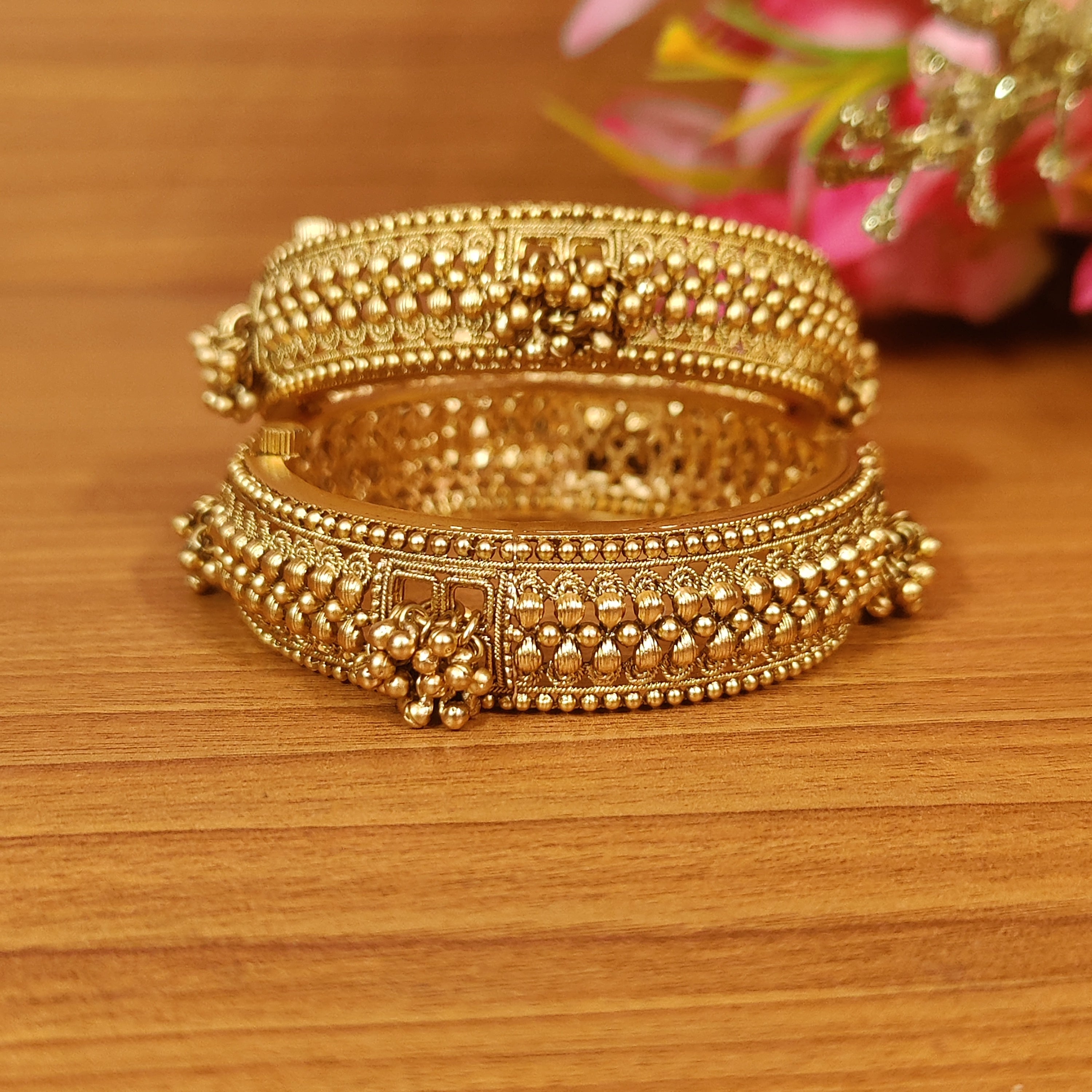 ANTIQUE GOLD PLATED TRADITIONAL GHUNGROO BANGLES