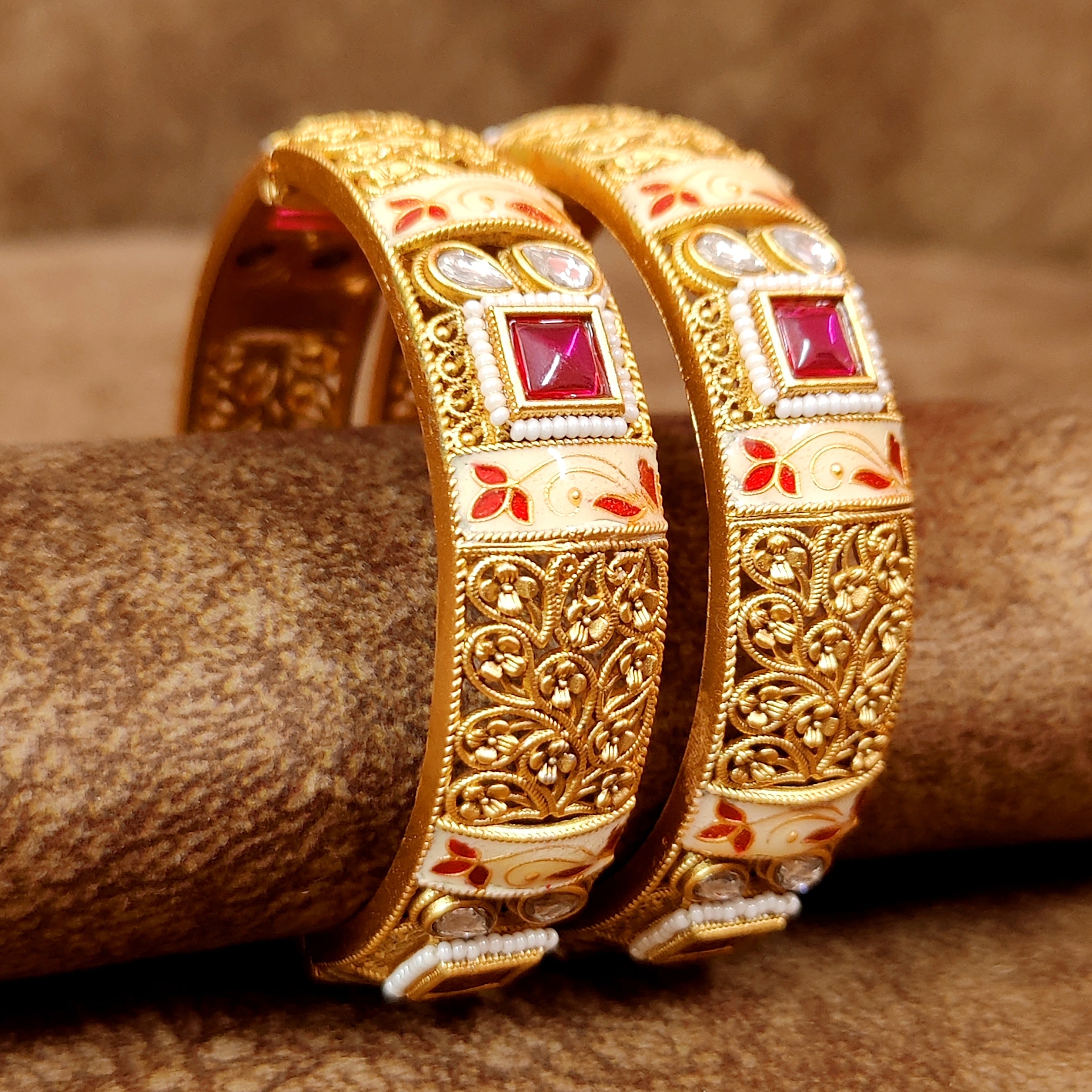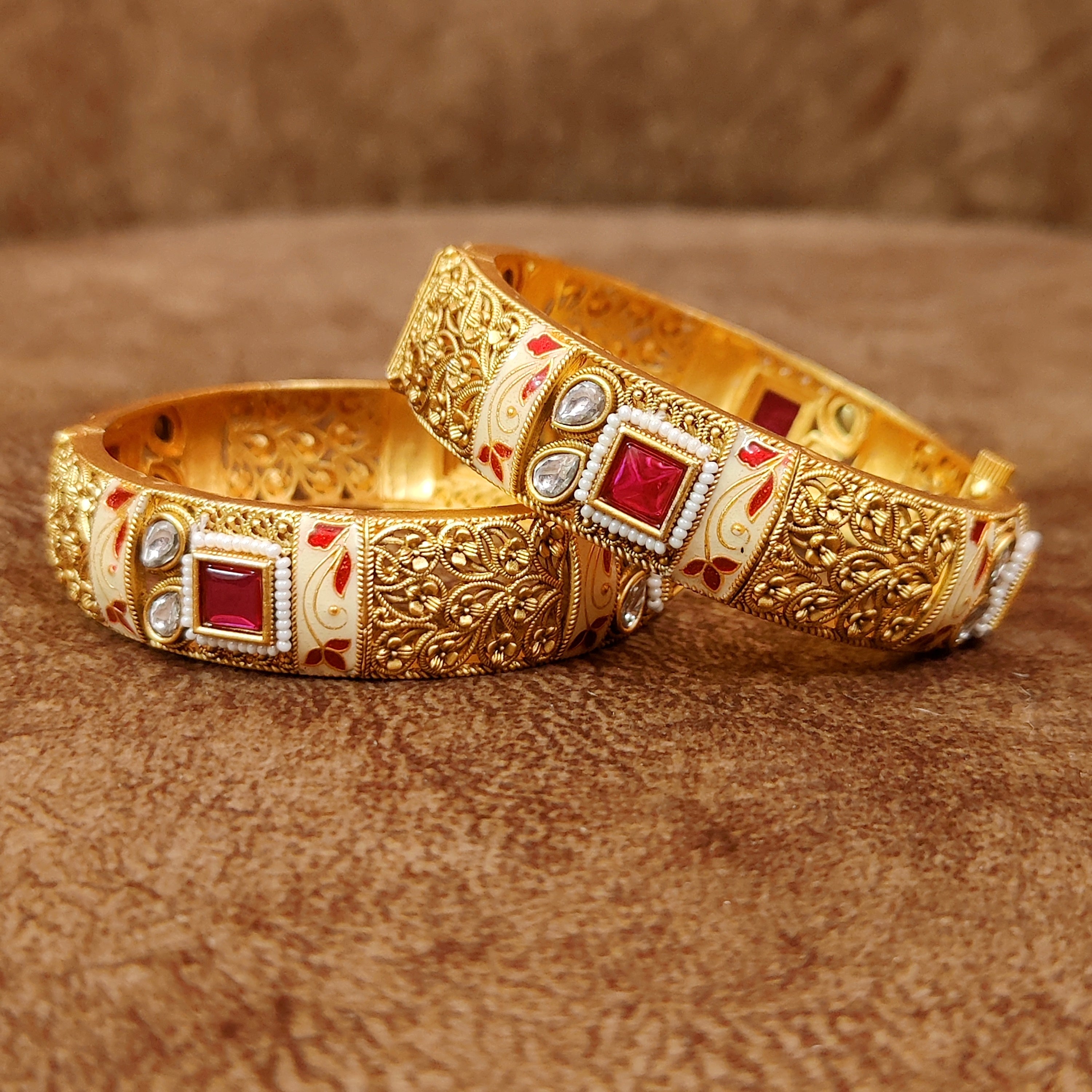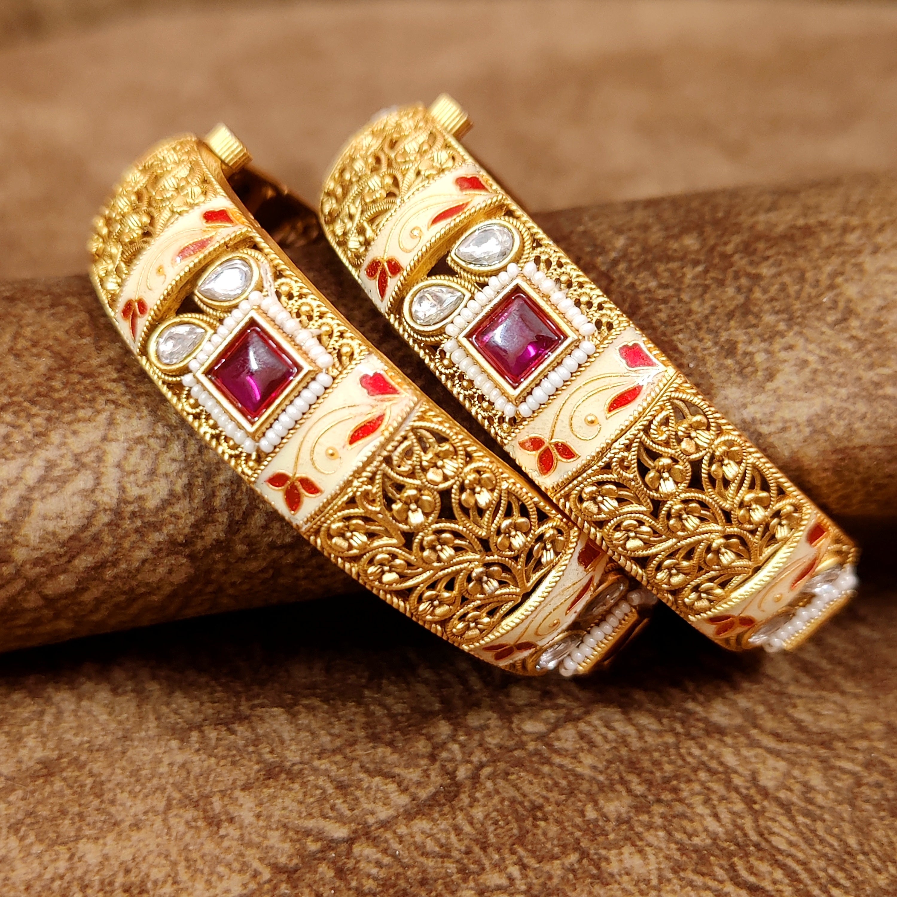 GOLD FINISH MEENAKARI KUNDAN OPENABLE BANGLES