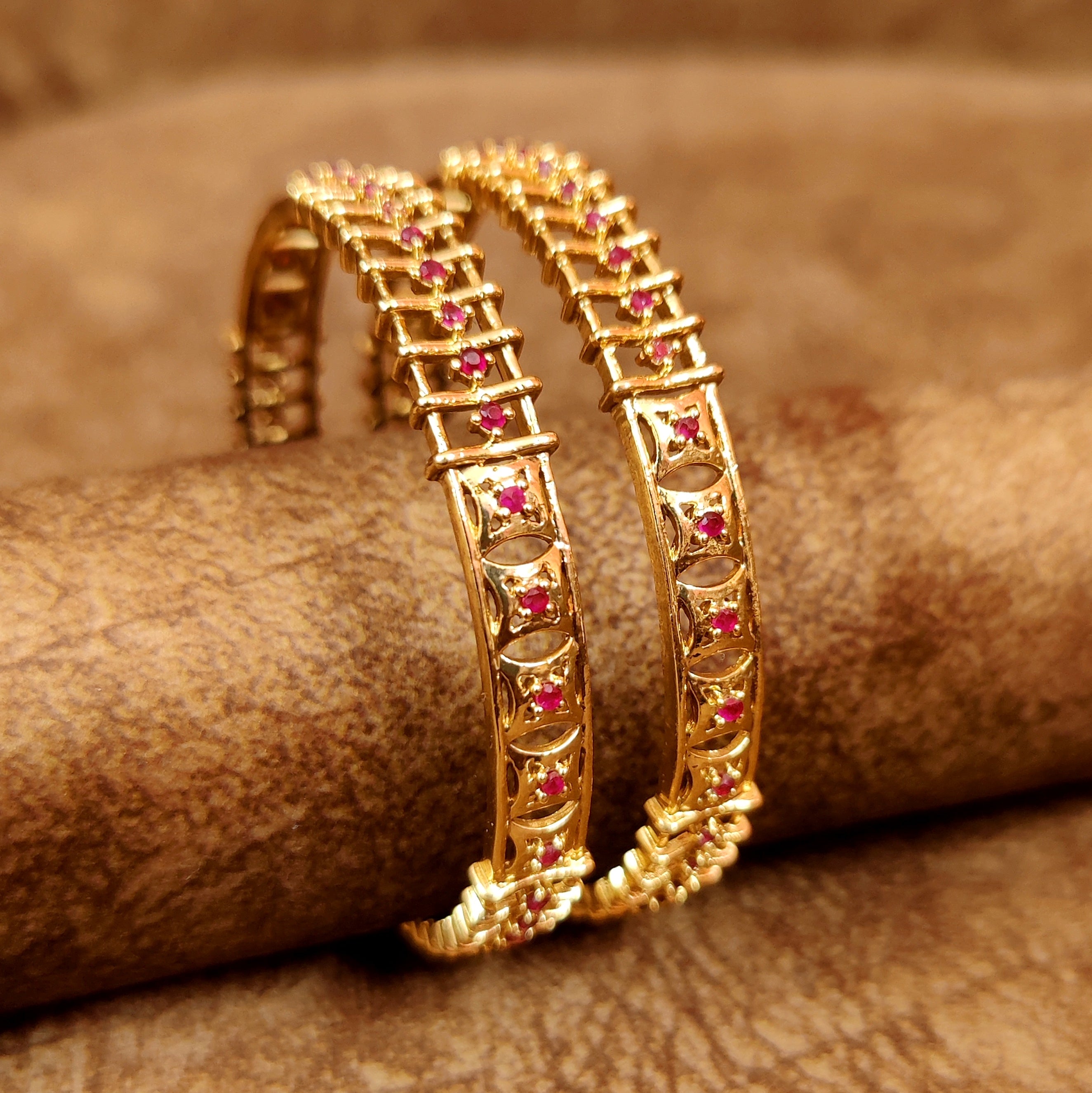 GOLD PLATED RUBY STUDDED LIGHTWEIGHT BANGLES