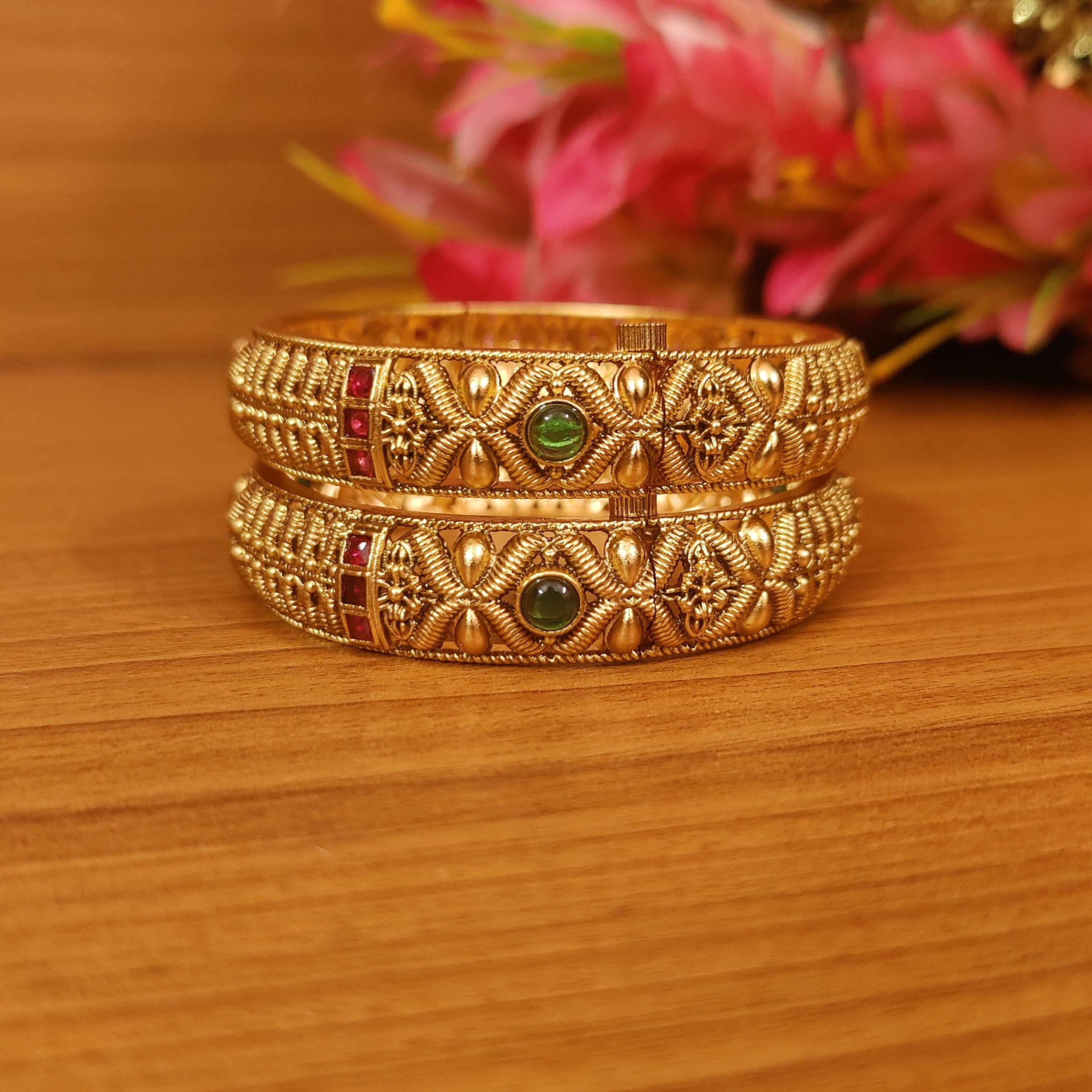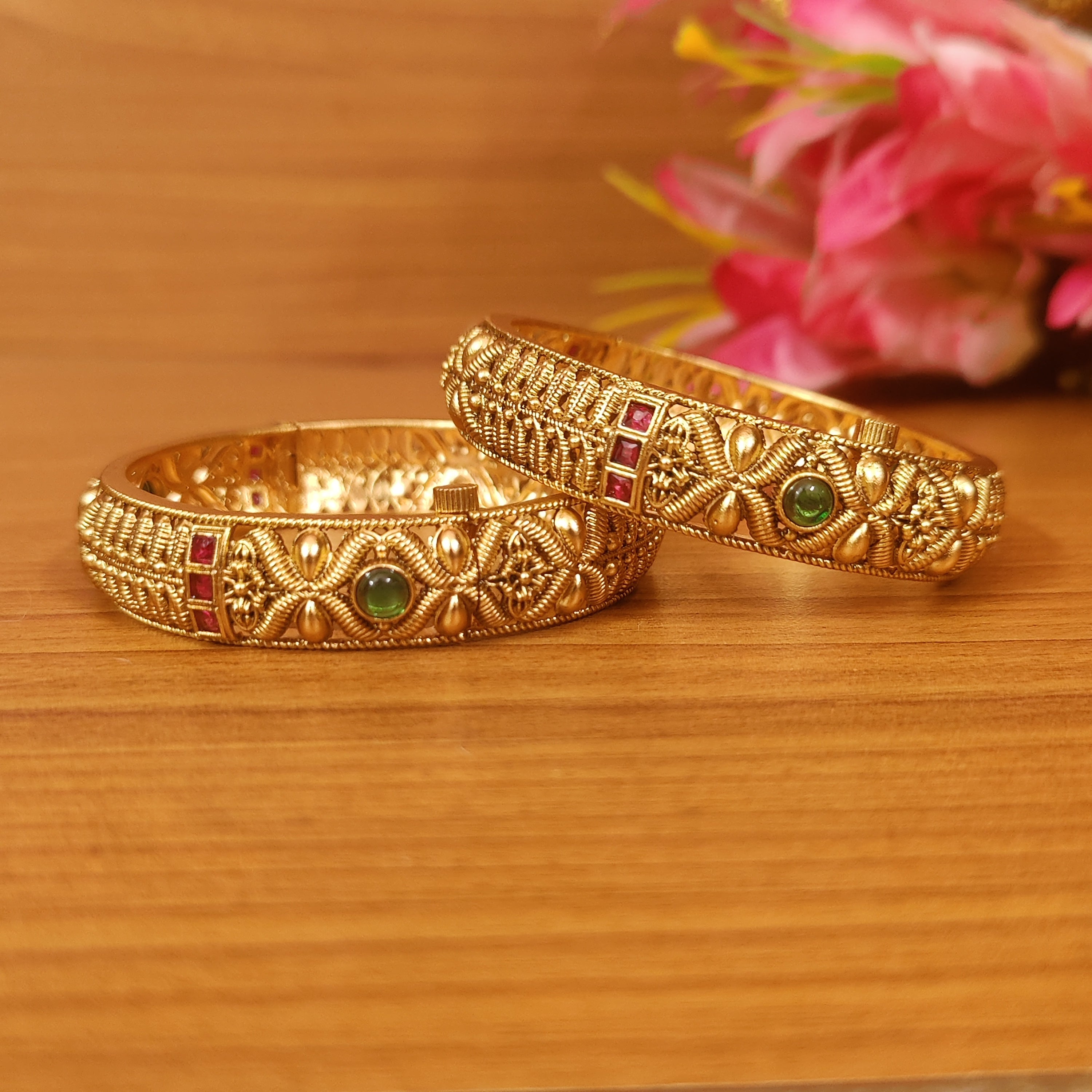 Add a vibrant touch to your jewelry collection with our Multicolour Gold Plated Real Look Openable Bangles. These bangles feature a dazzling array of colors, paired with a rich gold plating that offers a luxurious, real-gold appearance. The intricate design and openable feature ensure both style and convenience, making them perfect for festive occasions or adding a pop of color to your everyday attire.