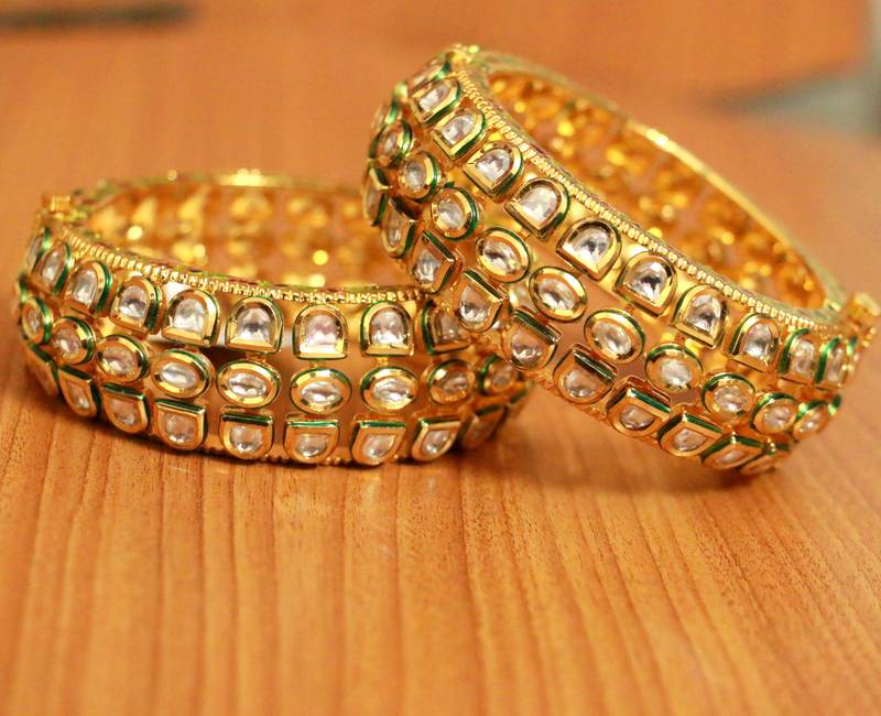 UNCUT KUNDAN POLKI BROAD RAJWADA BANGLES