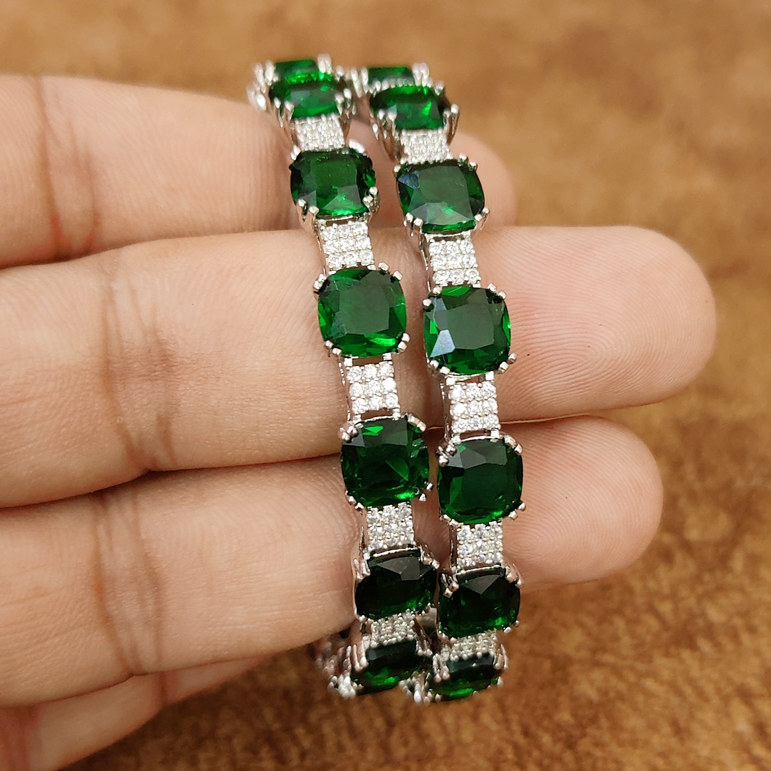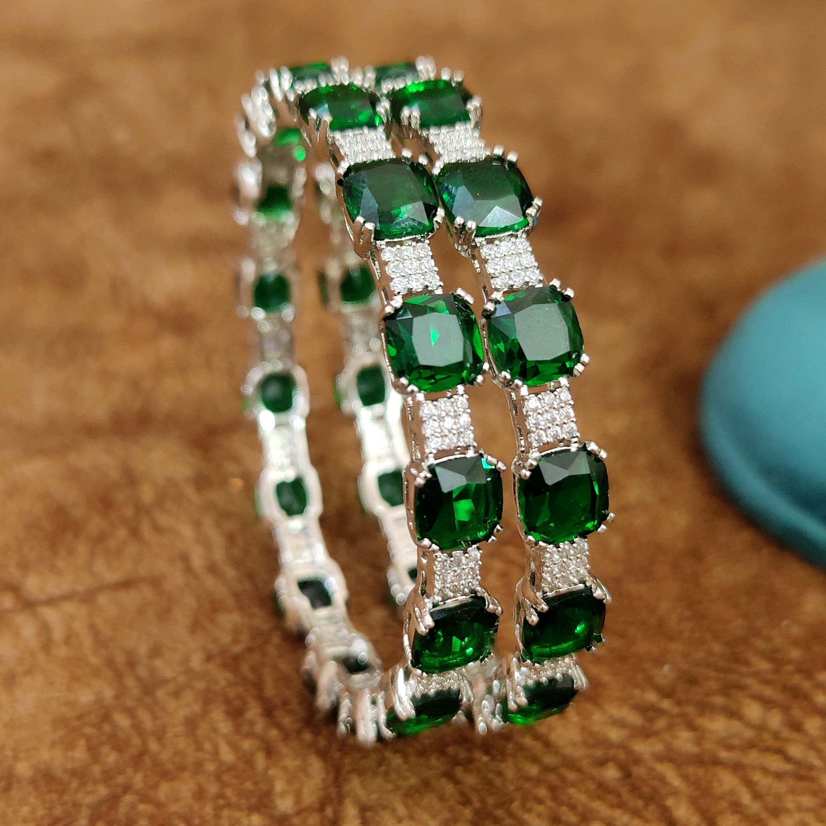 Elevate your style with the Cartier-Inspired Green Silver-Plated Bangles, a sophisticated accessory crafted to perfection. Adorned with vibrant green stones set in a sleek silver-plated finish, these bangles exude elegance and timeless charm. Perfect for weddings, festive celebrations, and special events, they pair effortlessly with traditional and contemporary outfits, adding a luxurious touch to your ensemble.
