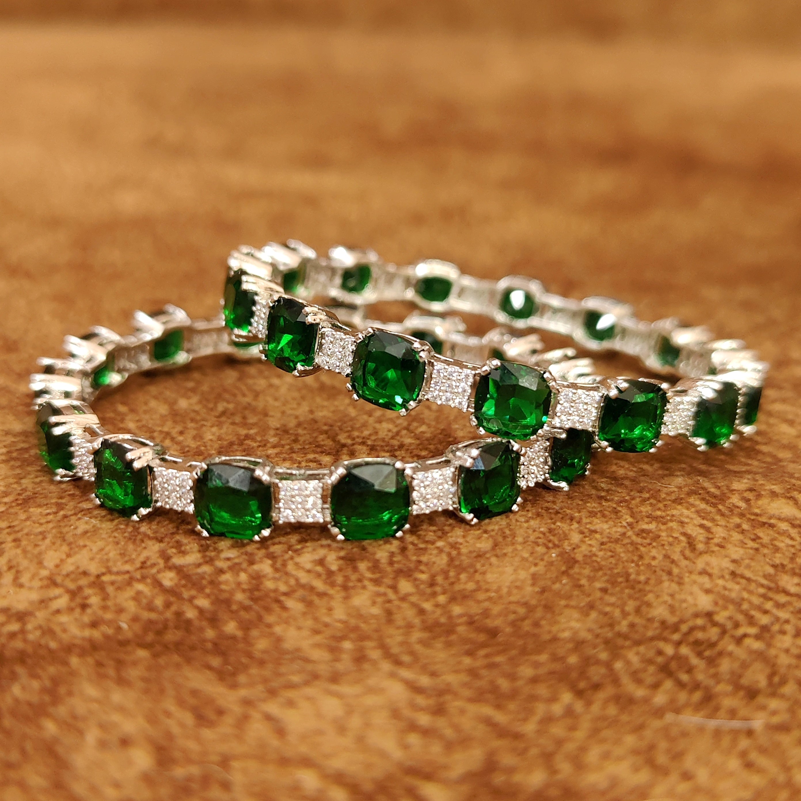 CARTIERR INSPIRED GREEN SILVER PLATED BANGLES