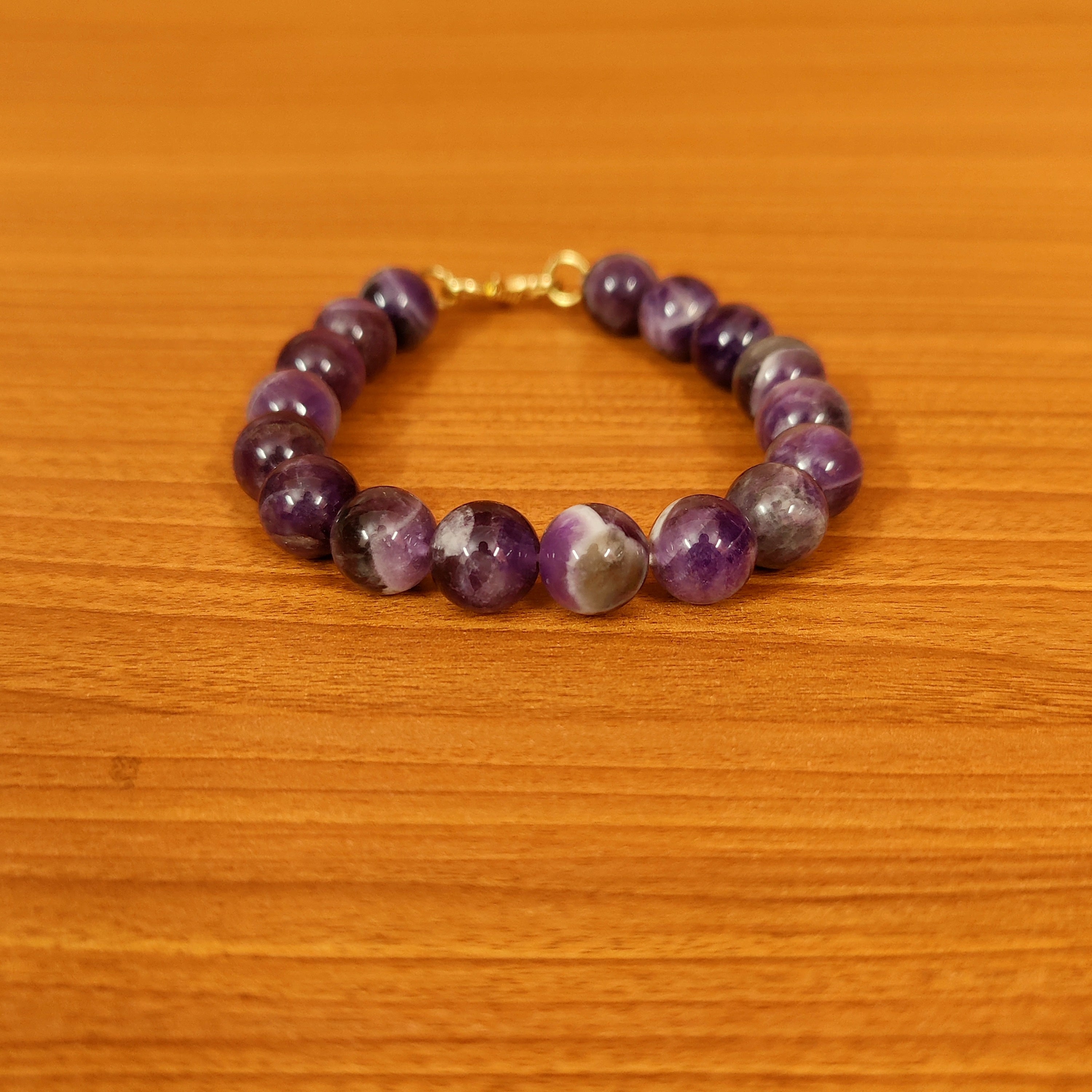 This beautiful bracelet is handcrafted with real amethyst beads of 10mm size attached to the gold plated hook. The bracelet hook is coated with 18 kt gold plating that gives a real gold look to the design.