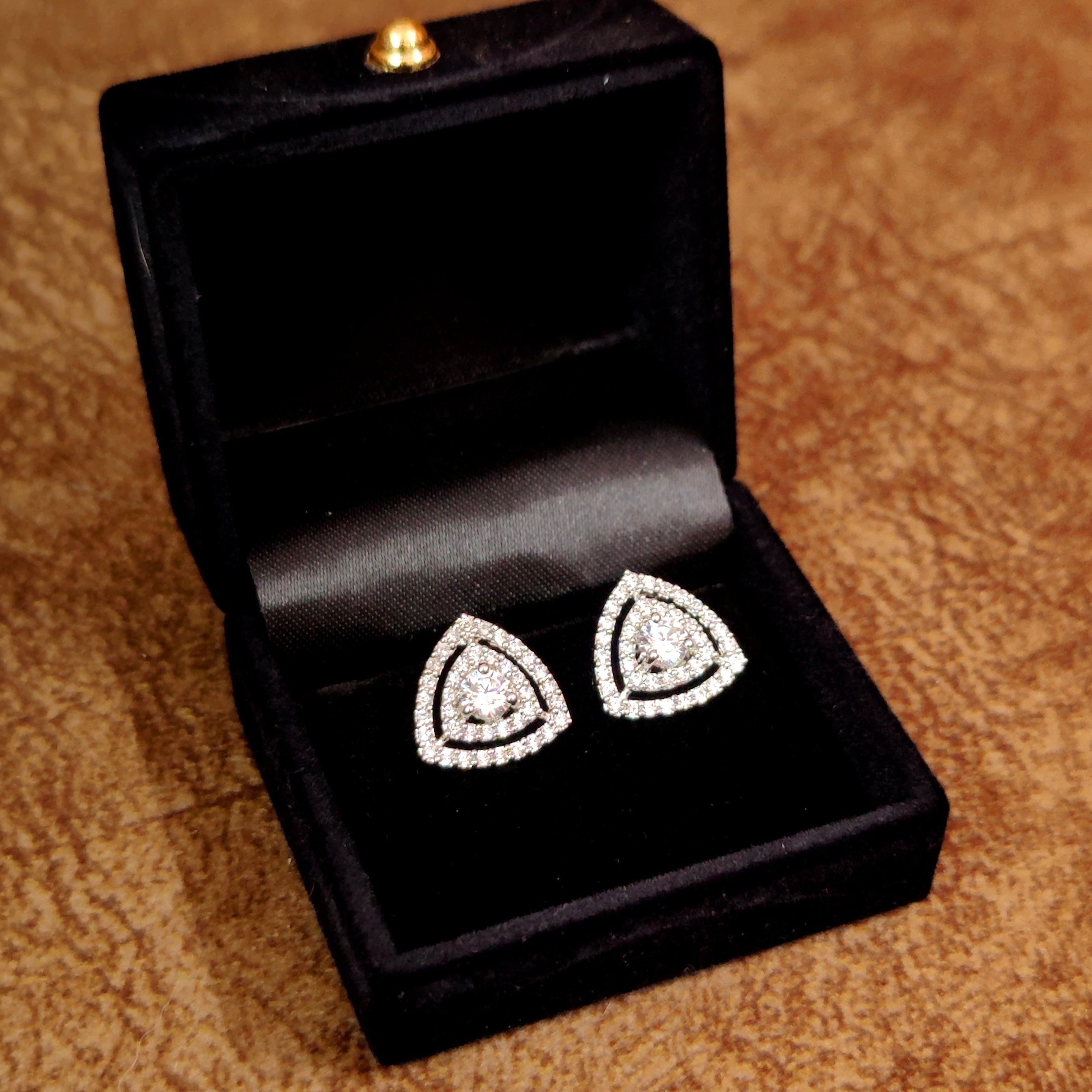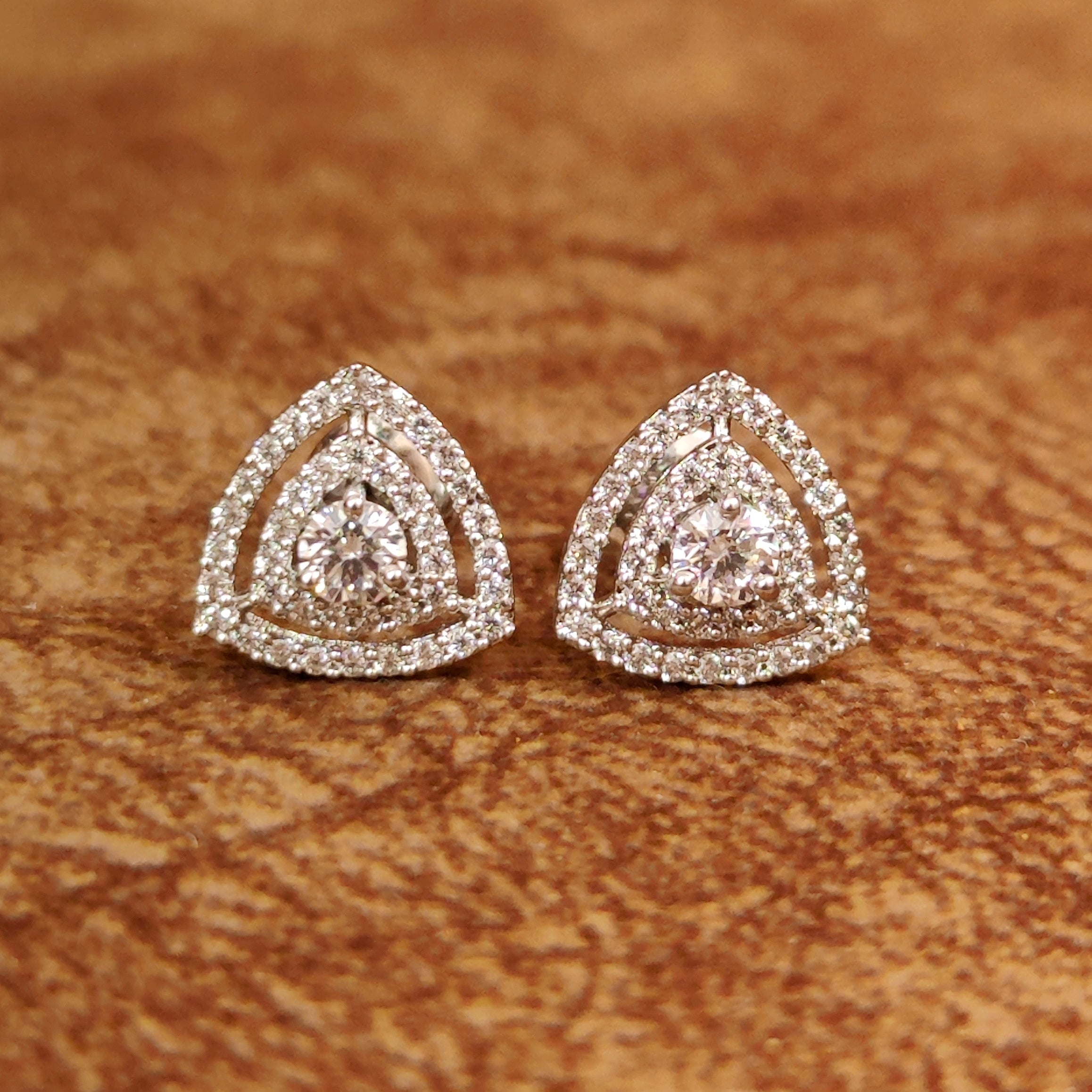 Add a touch of elegance to your daily wear with our 92.5 STERLING SILVER DIAMOND LOOK STUDS. Featuring a trendy design with diamond look alike pattern and signity fine stones, these studs are plated with white gold rhodium for a stunning shine. The screw pattern ensures a secure fit. Elevate your style with these affordable luxury earrings!