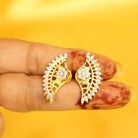 These beautiful Earrings are handcrafted in silver alloy and american diamond of very fIne quality .These earrings are coated with 18 kt gold polish which give them a unique look . An absolutely stunning piece to own and are very light in weight.