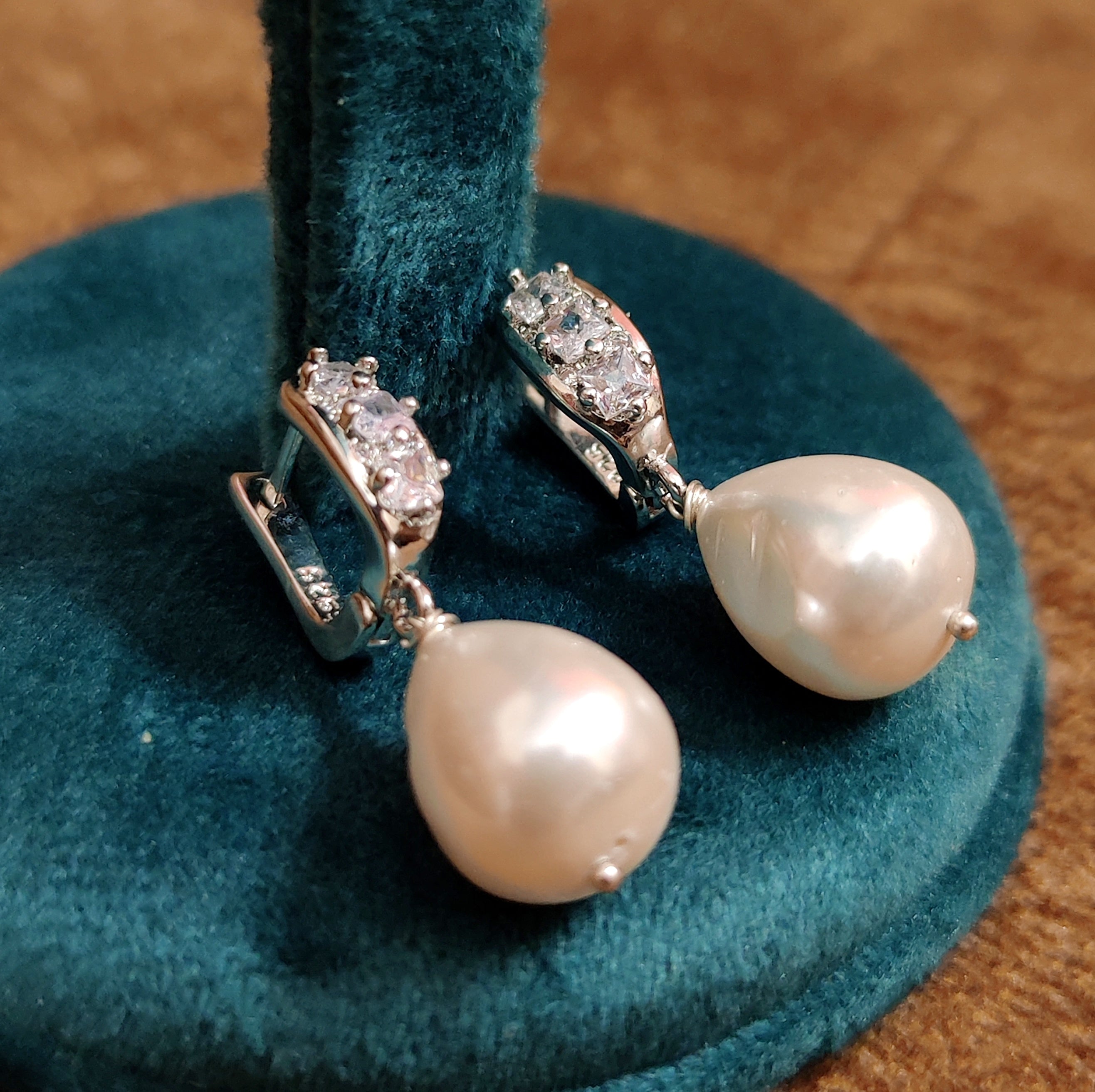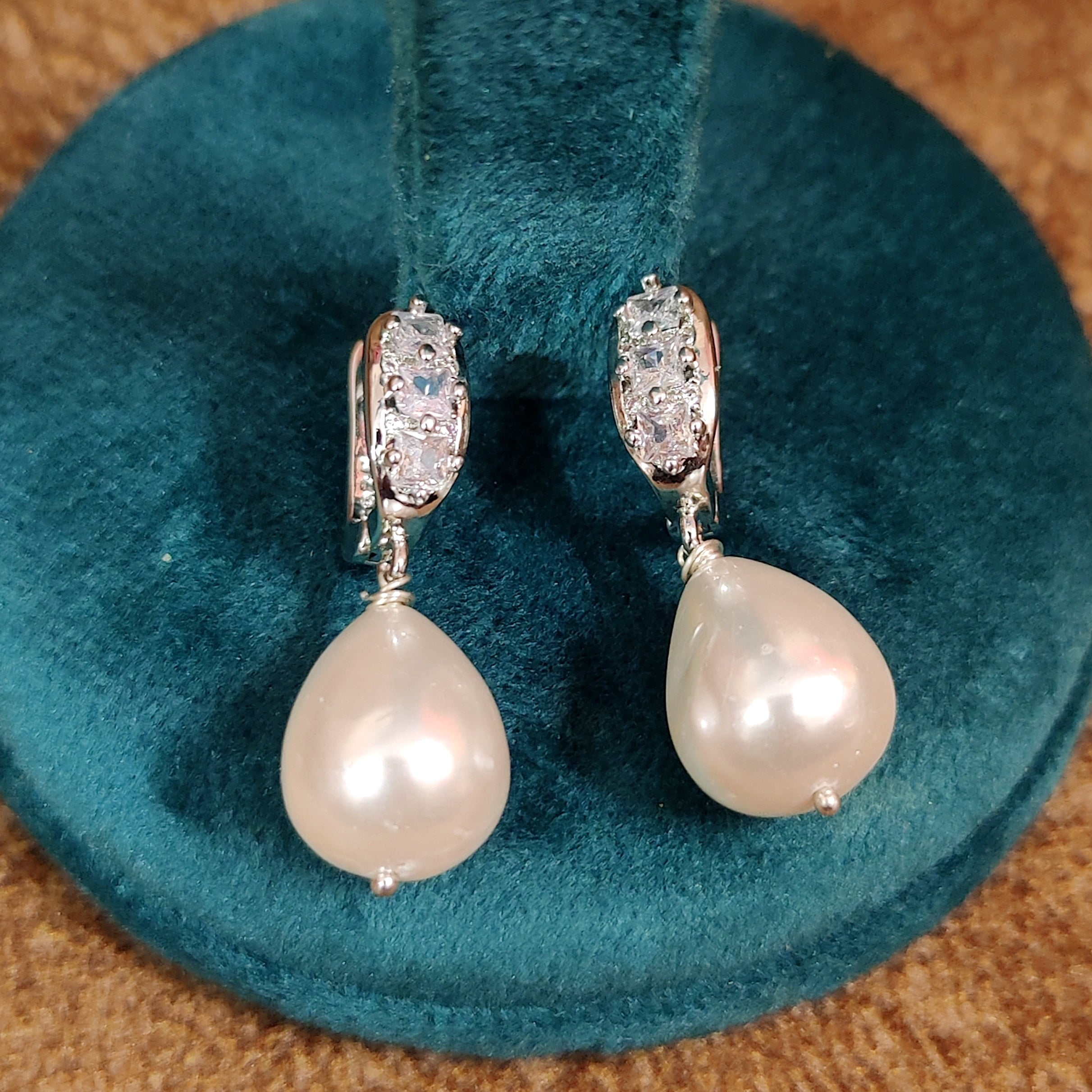 CZ STUDDED SILVER PLATED SHELL PEARL HOOPS