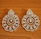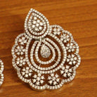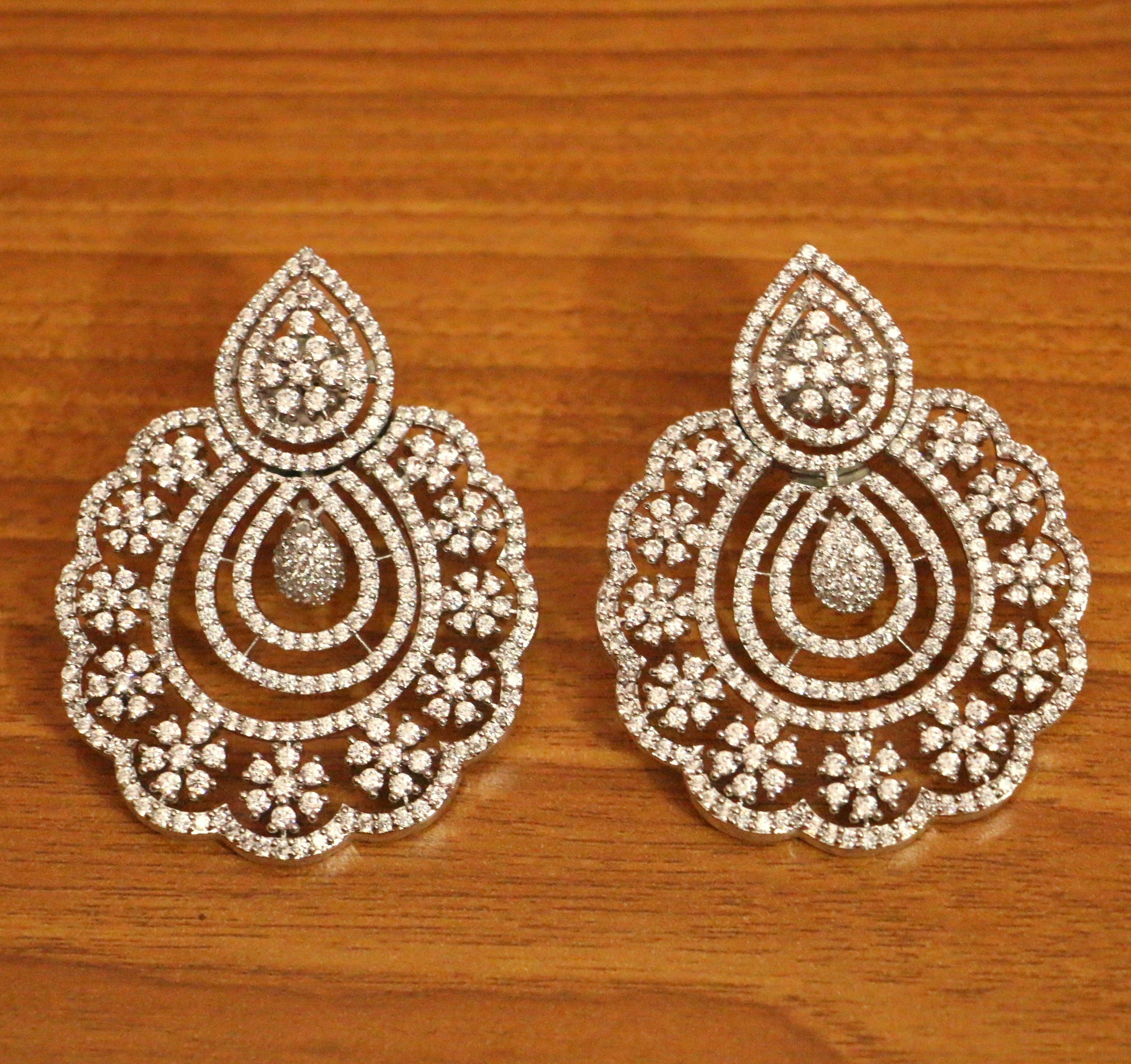 These earrings are handcrafted in silver alloy with imitation american diamond work of very fine quality. These artistic yet modern earrings are plated with high quality white gold rhodium. The earrings are very light in weight.