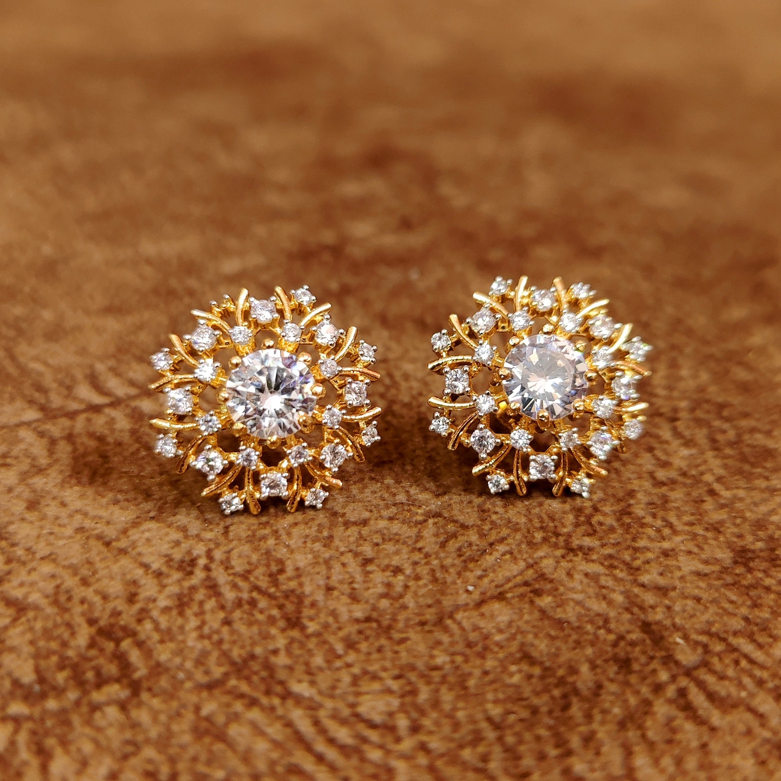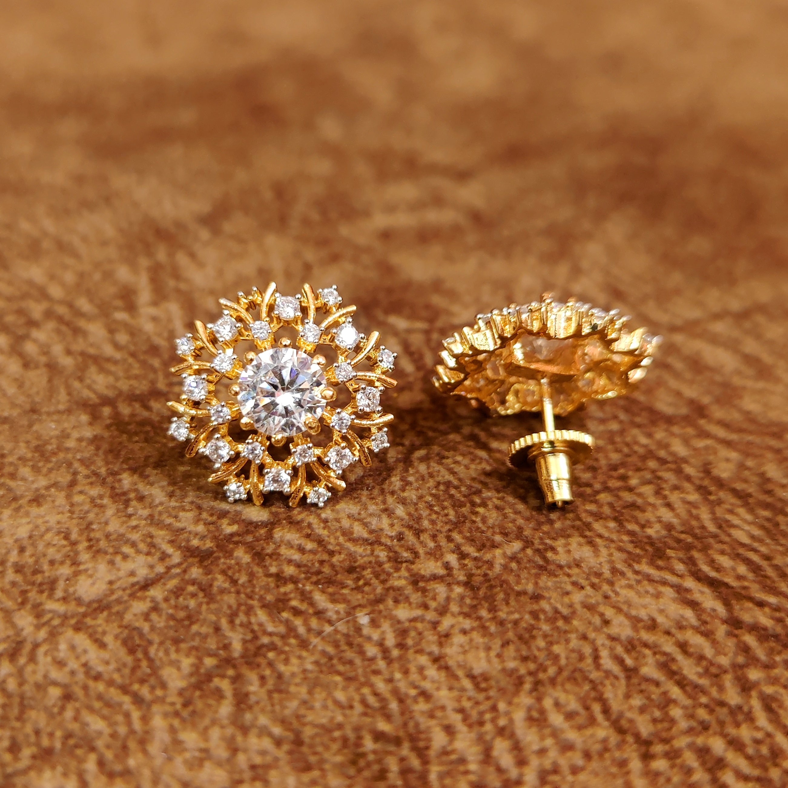 Elevate your style with these exquisite white stud earrings, perfect for adding a touch of elegance to any outfit. Featuring a stunning central 1ct signity stone, these earrings are beautifully designed with intricate gold detailing that radiates a timeless charm. Surrounding the central stone are sparkling, round-cut cubic zirconia that catch the light from every angle, enhancing the brilliance and glamour of these earrings.