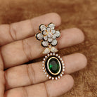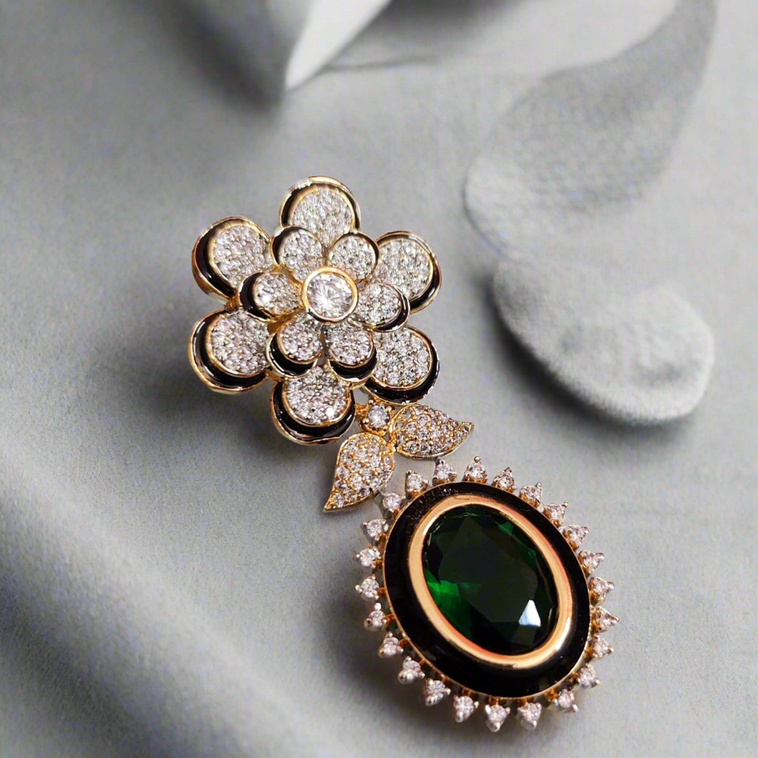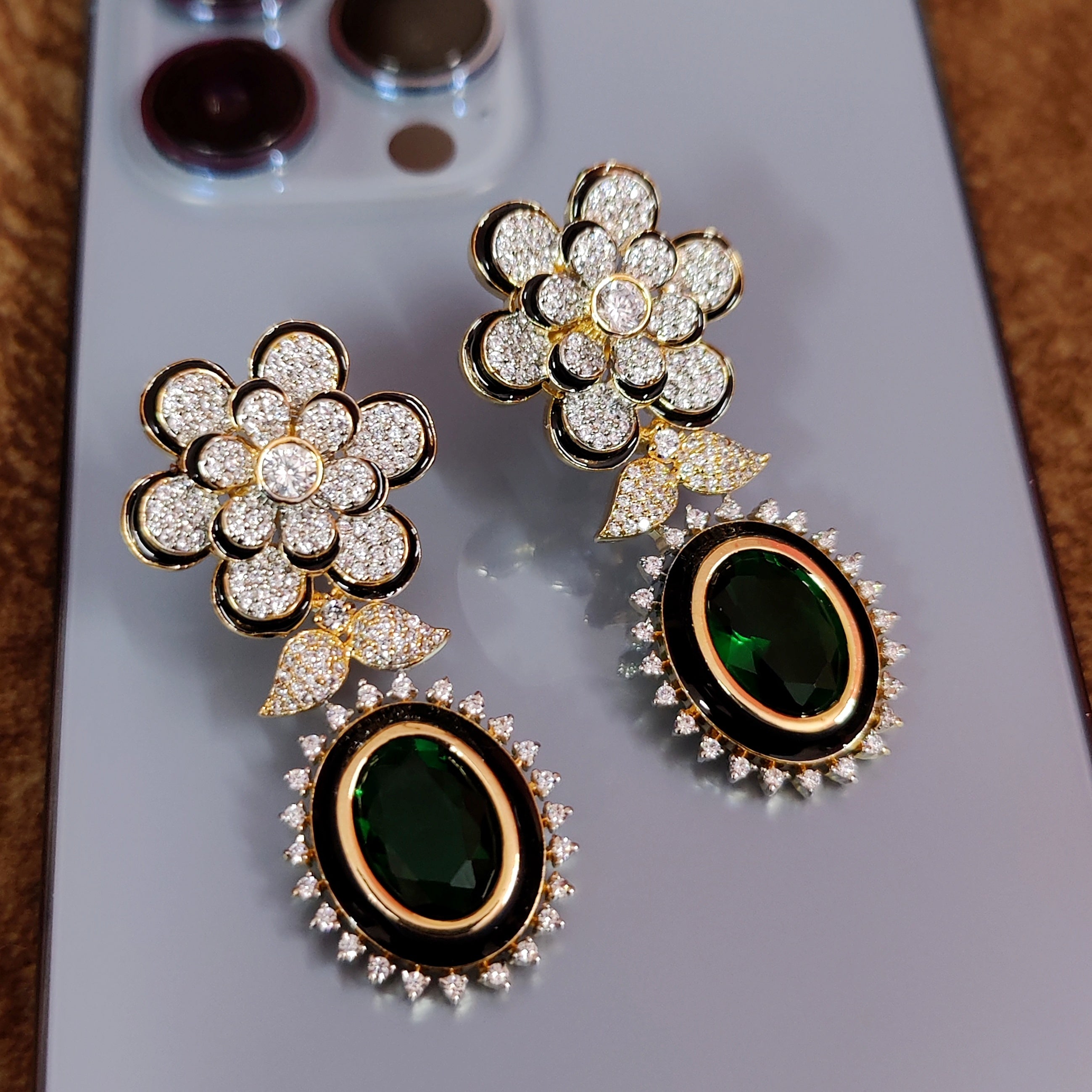 EMERALD & CZ DIAMOND LOOK MEENAKARI EARRINGS