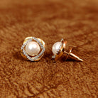 PEARL & CZ GOLD PLATED DIAMOND LOOK STUDS