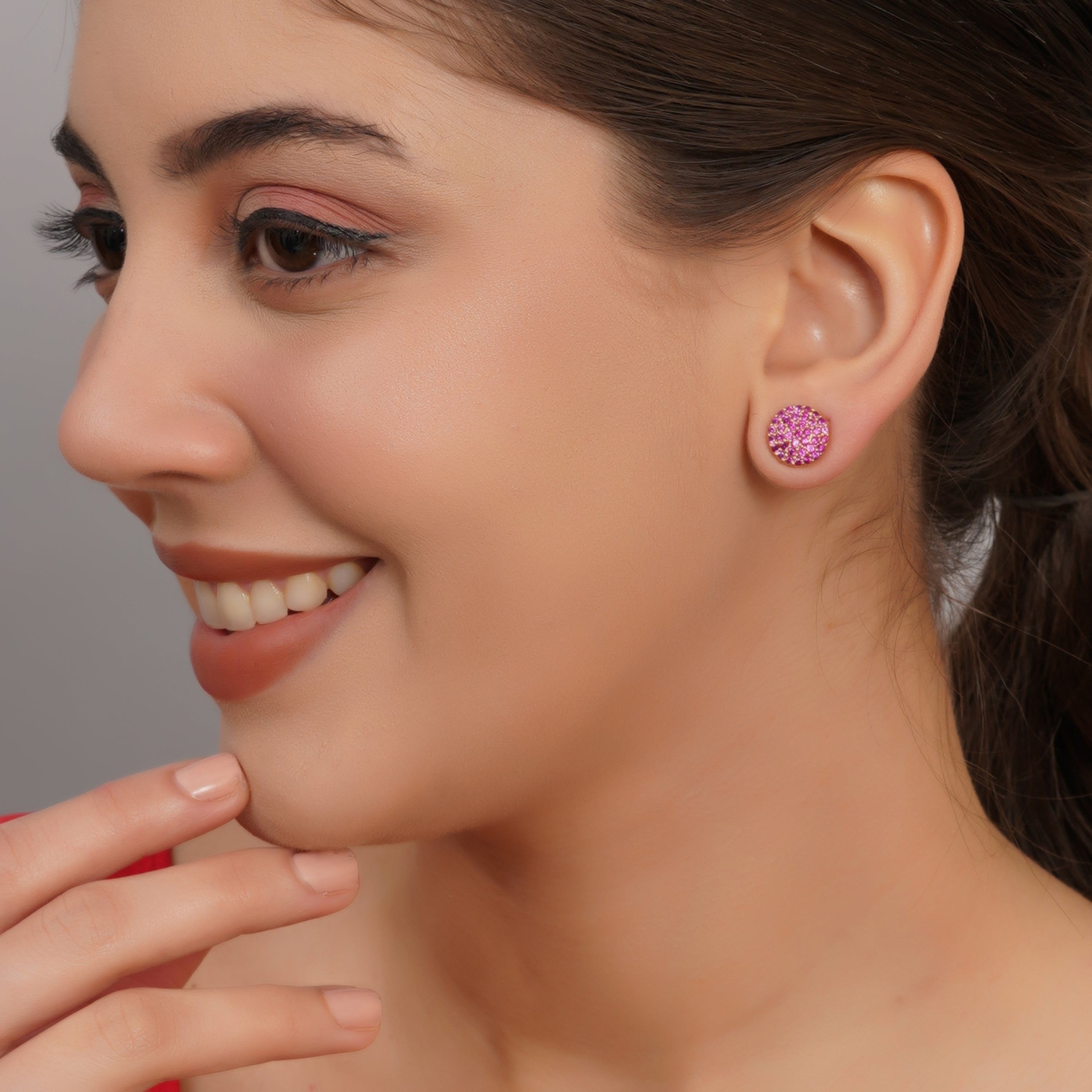 These Cubic Zirconia Studs Are Handcrafted In Silver Alloy With Imitation Ruby Colour Stones Of Very Fine Quality. These Artistic Yet Modern Studs Are Plated With High Quality Gold Rhodium. The Earrings Are Very Light In Weight.