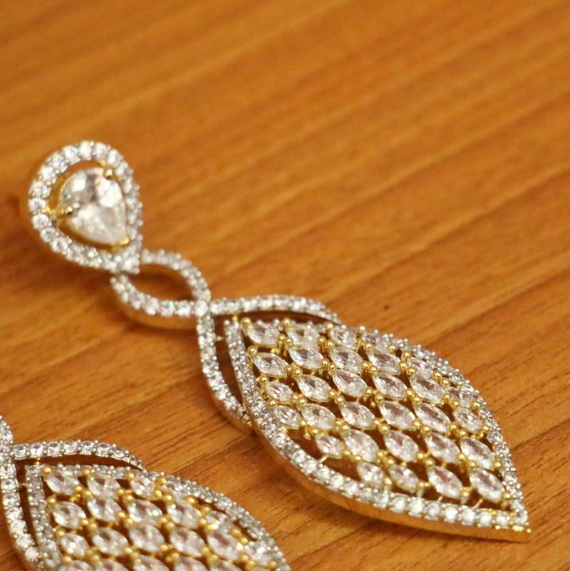 These Leaf Pattern Earrings Are Handcrafted In Silver Alloy With Imitation Cz Stone Of Very Fine Quality. These Artistic Yet Modern Earrings Are Plated With High Quality Nickel Free Gold Rhodium. The Earrings Are Very Light In Weight.