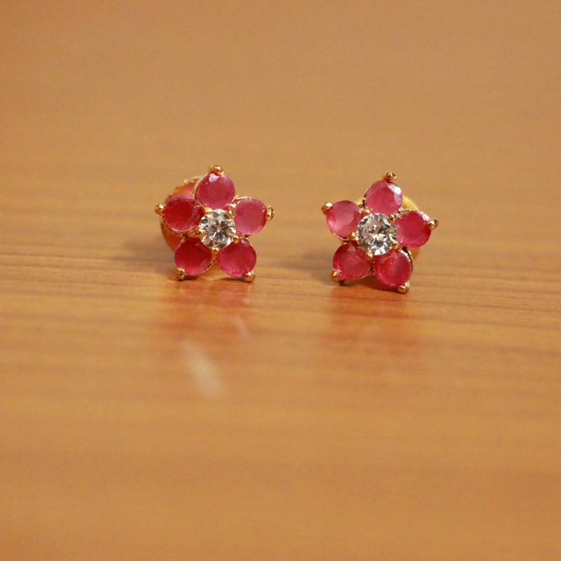 Ruby Diamond Look Gold Finish Wedding Earrings