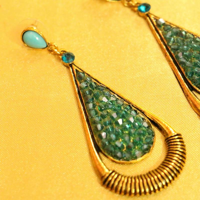 Turquoise Colour Gold Look Antique Fashion Earrings