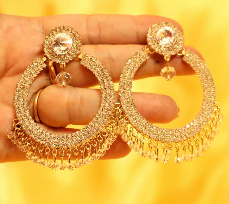 These beautiful earrings are handcrafted in brass alloy with imitation zircon work of very fine quality. These earrings are coated with antique gold polish which give them a unique look . An absolutely stunning piece to own and are very light in weight.