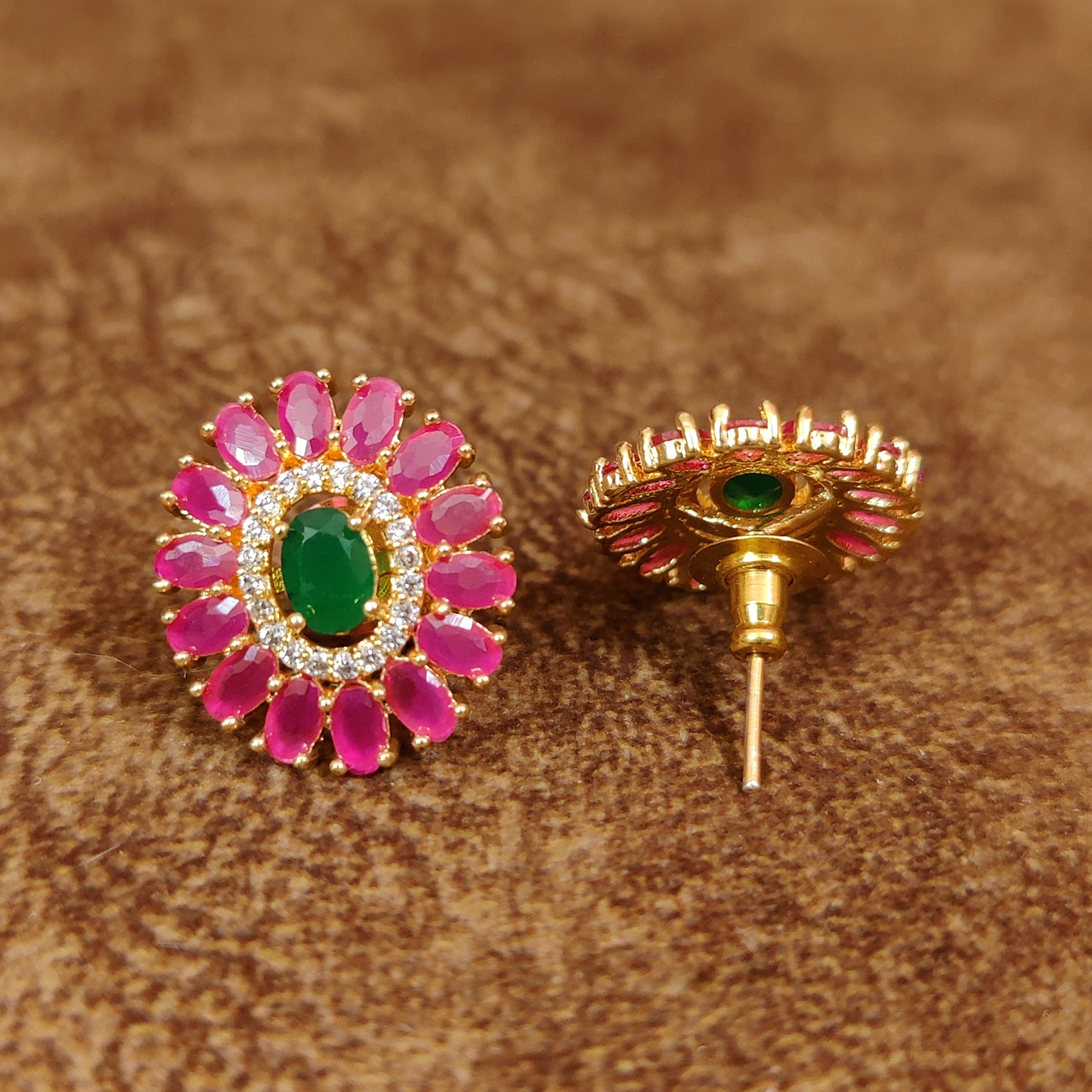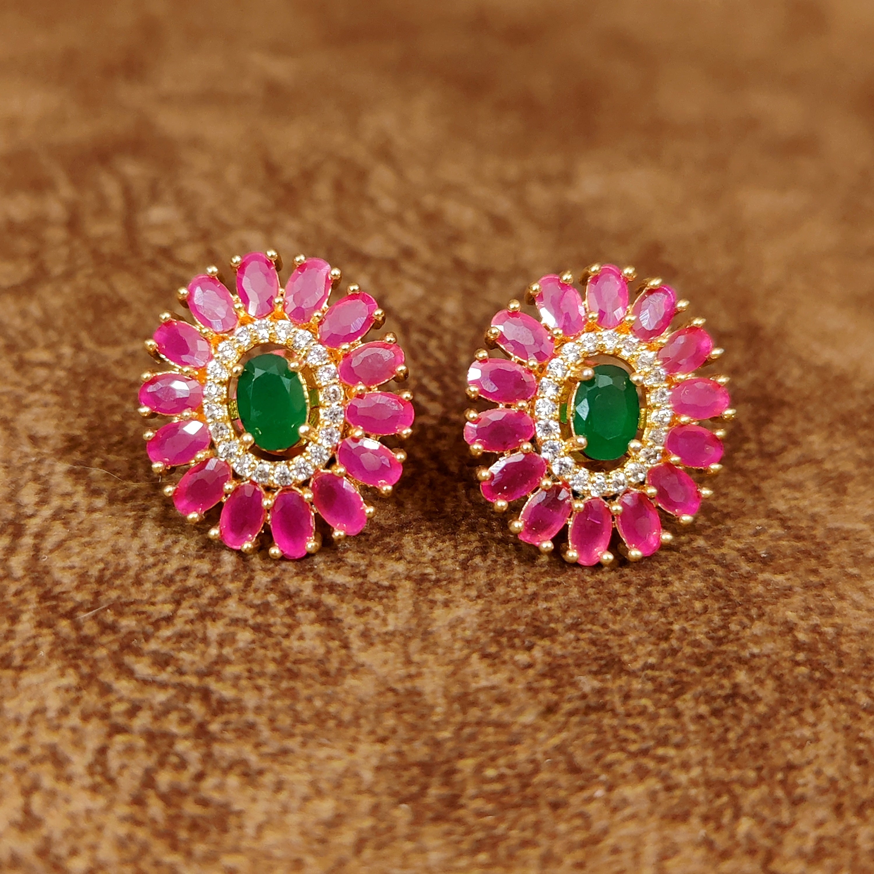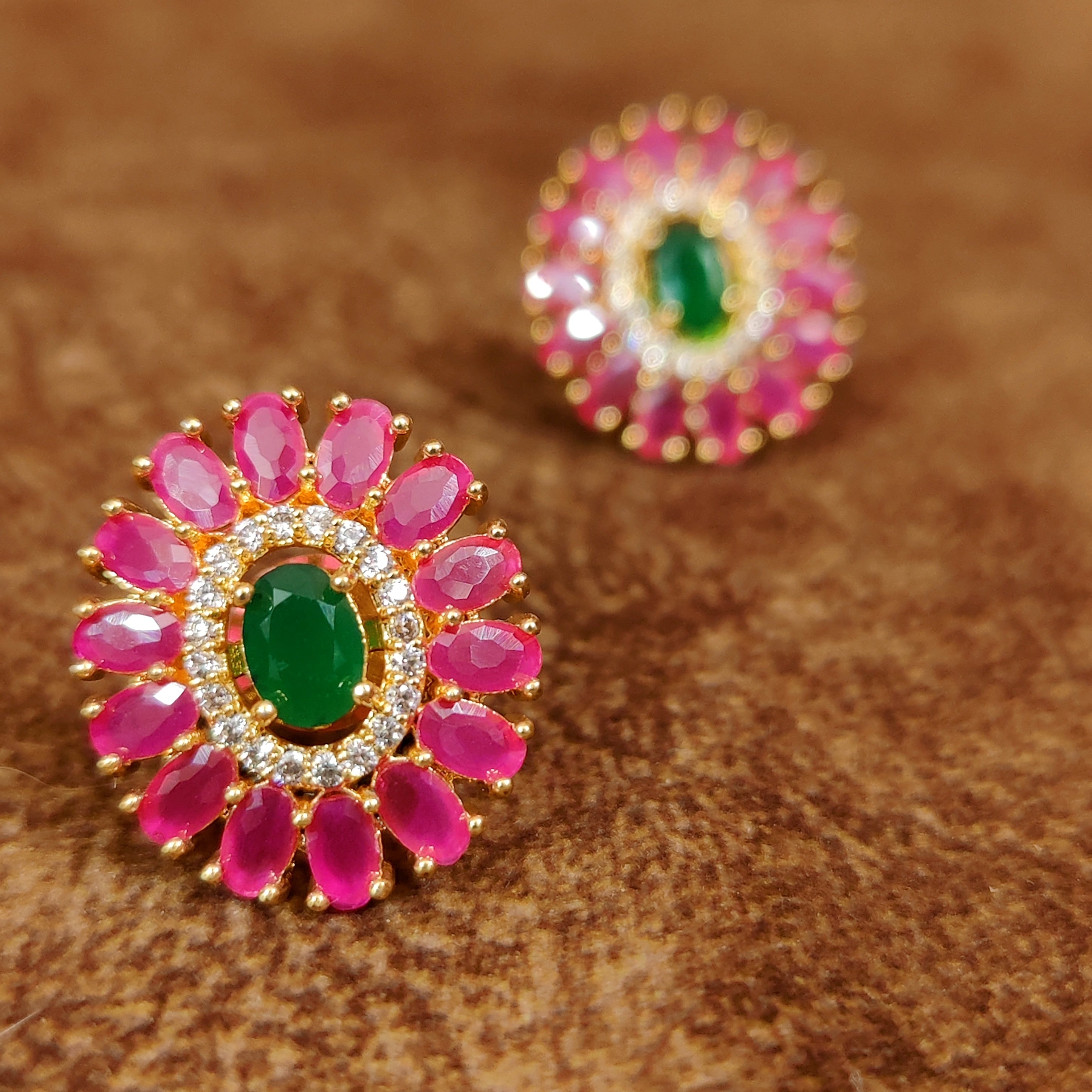 RED GREEN SAPPHIRE STUDDED DIAMOND LOOK ALIKE STUDS