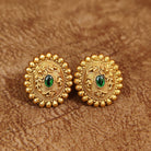 Elegance meets nature with our Green Gold-Plated Oval Floral Pattern Studs. Crafted with precision and adorned with delicate floral motifs, these studs exude timeless charm. The green Stone detailing adds a refreshing touch, perfect for both casual outings and special occasions. Elevate your style effortlessly with these exquisite earrings from Sanvi Jewels.
