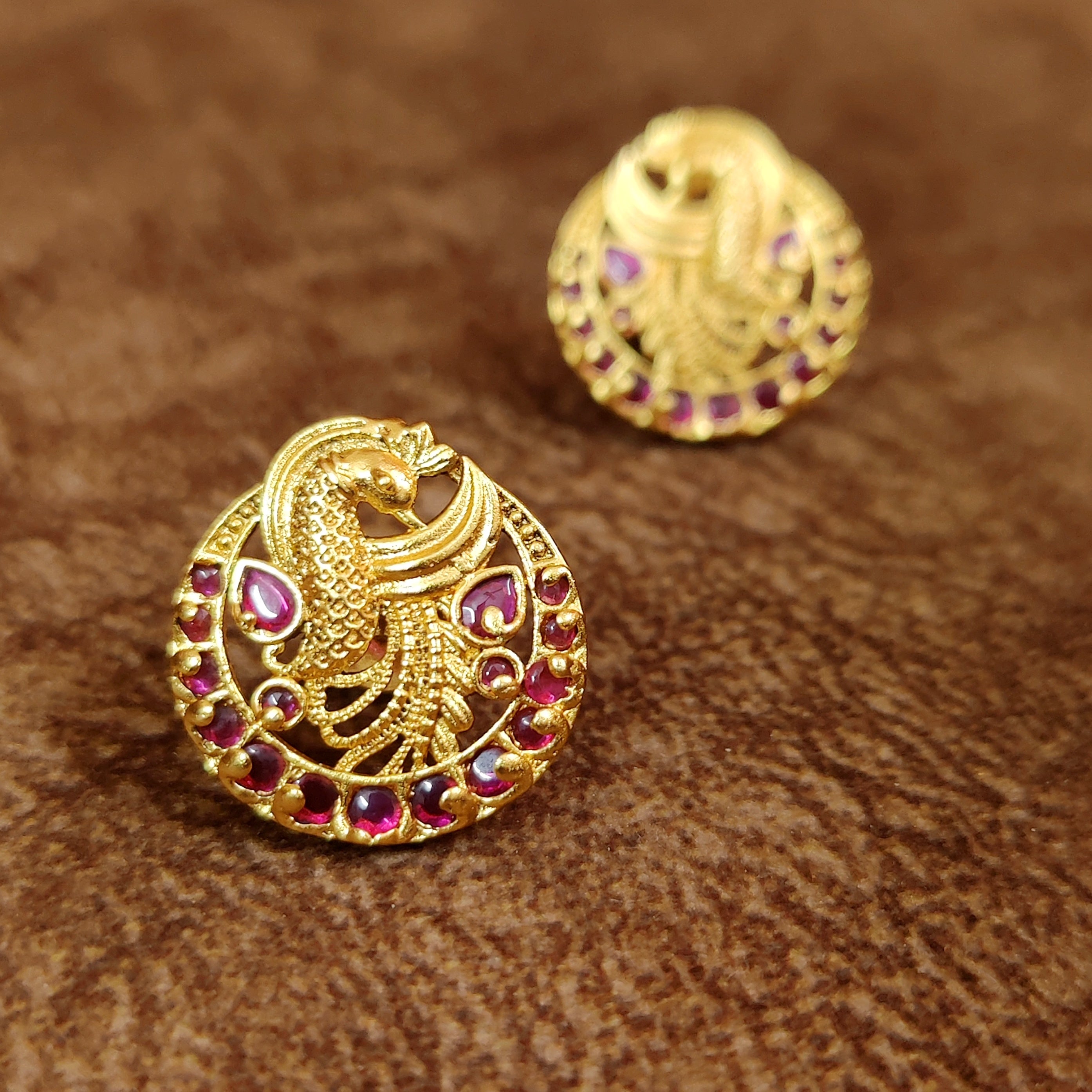 PREMIUM RUBY PEACOCK KEMPU SCREW BACK EARRINGS