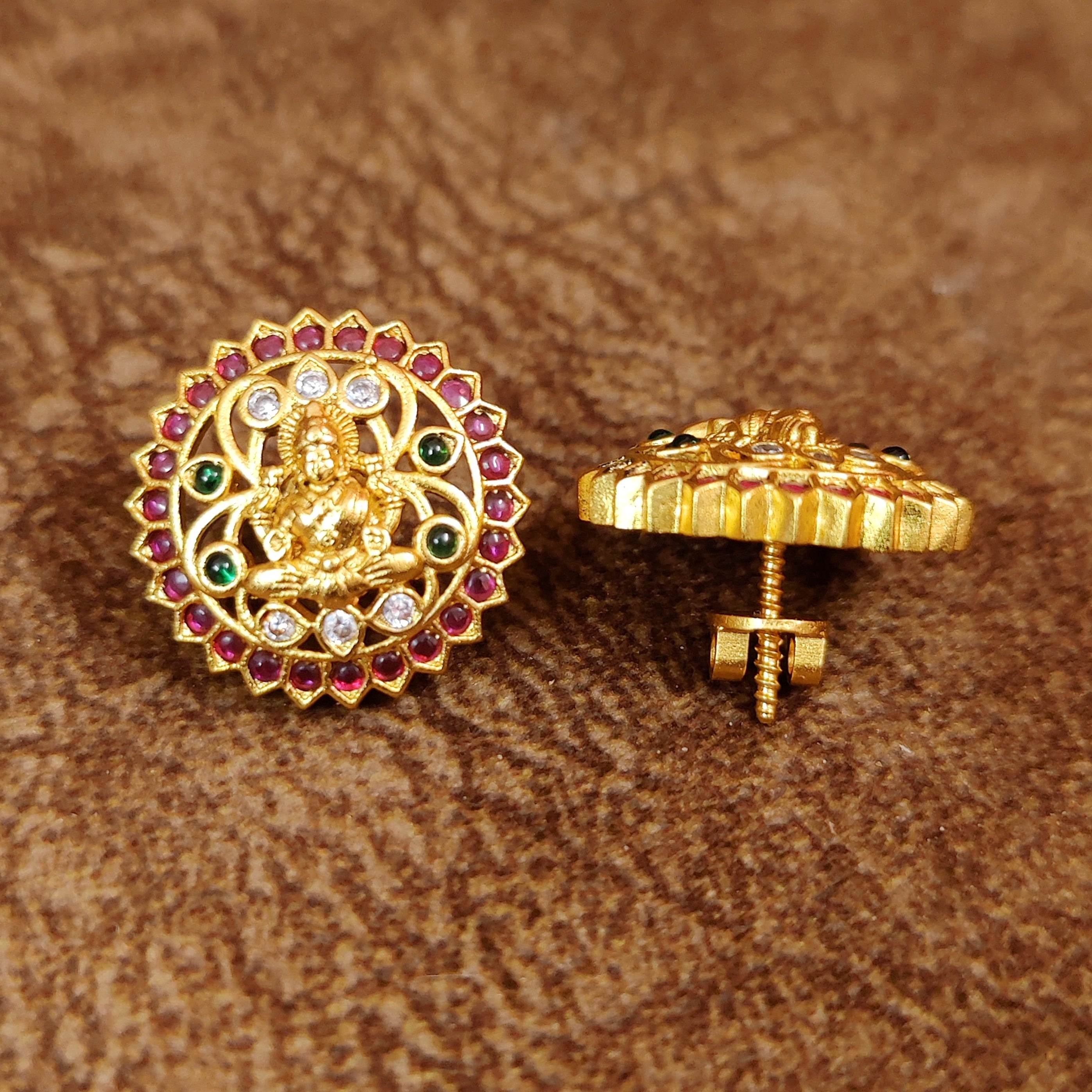 Elevate your traditional charm with the Premium Temple Look Kempu Stone Screw Back Studs, a perfect blend of heritage and elegance. Featuring intricate temple-inspired motifs adorned with vibrant Kempu stones, these studs exude timeless beauty. The secure screw-back design ensures a comfortable fit, making them ideal for weddings, festive celebrations, and cultural events. Pair them with ethnic attire to add a regal touch to your ensemble.
