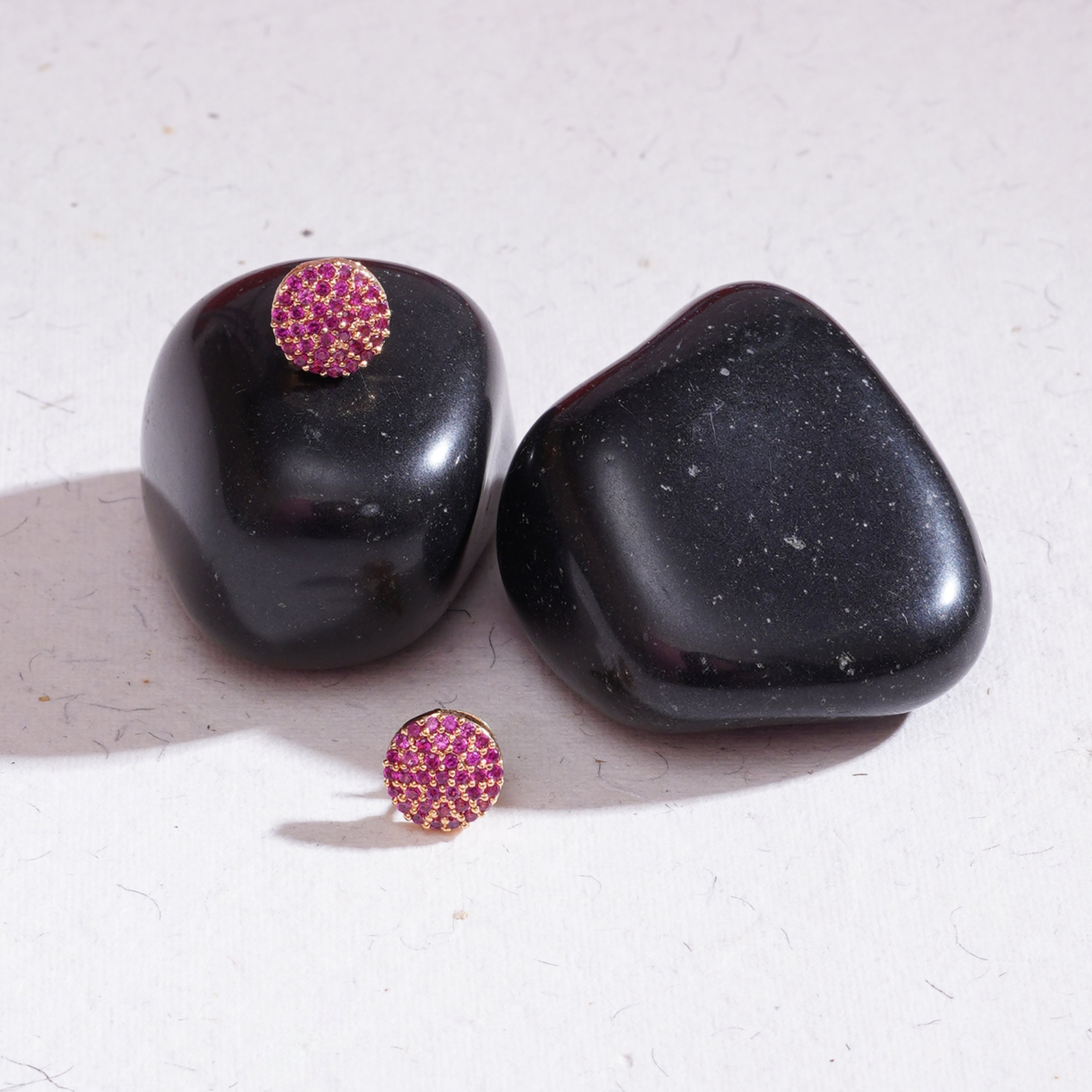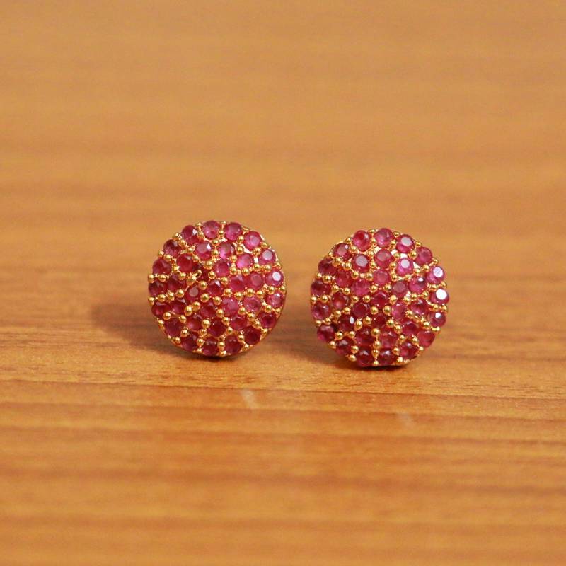 These Cubic Zirconia Studs Are Handcrafted In Silver Alloy With Imitation Ruby Colour Stones Of Very Fine Quality. These Artistic Yet Modern Studs Are Plated With High Quality Gold Rhodium. The Earrings Are Very Light In Weight.