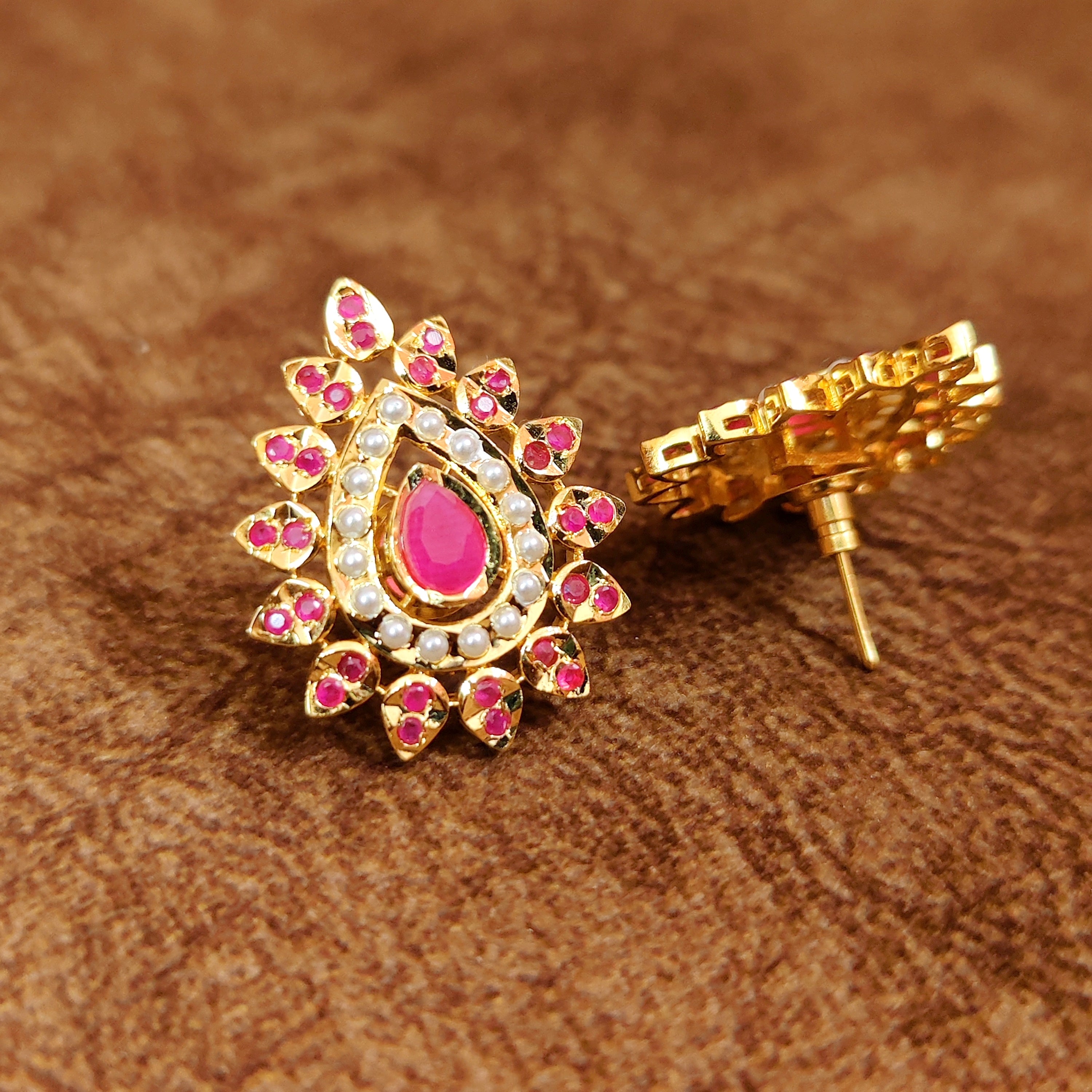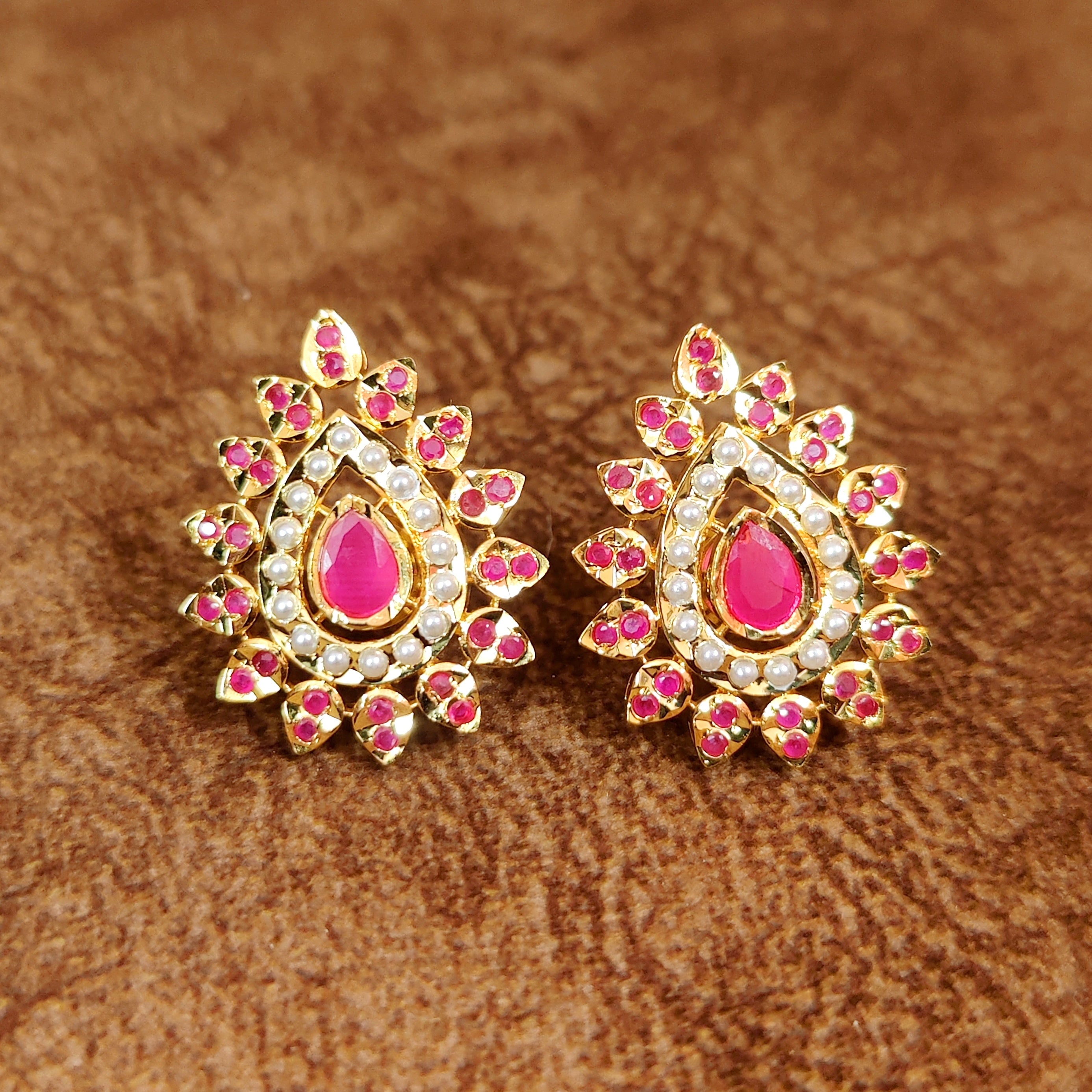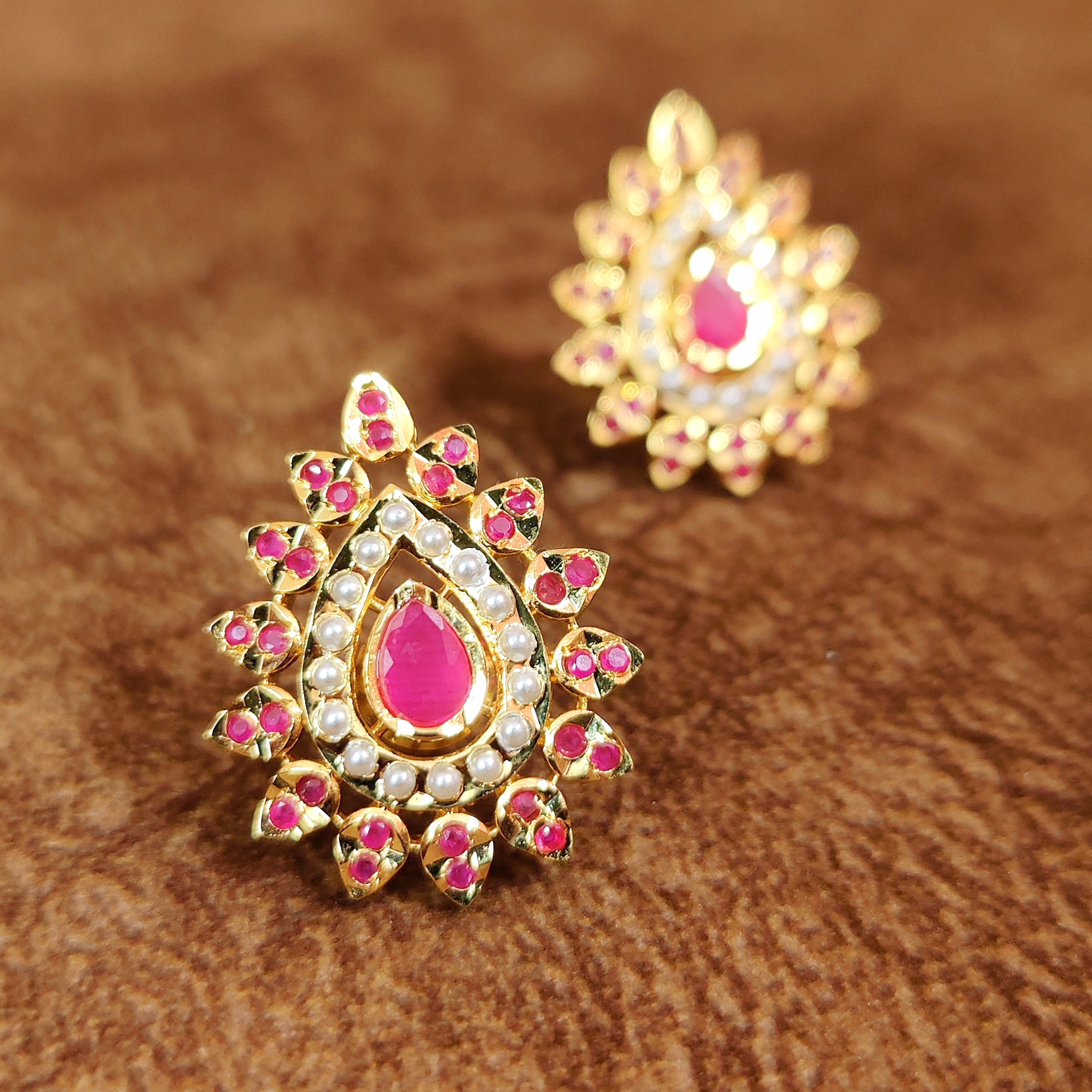 Ruby & Pearl Studded Pear Shape Jadau Style studs