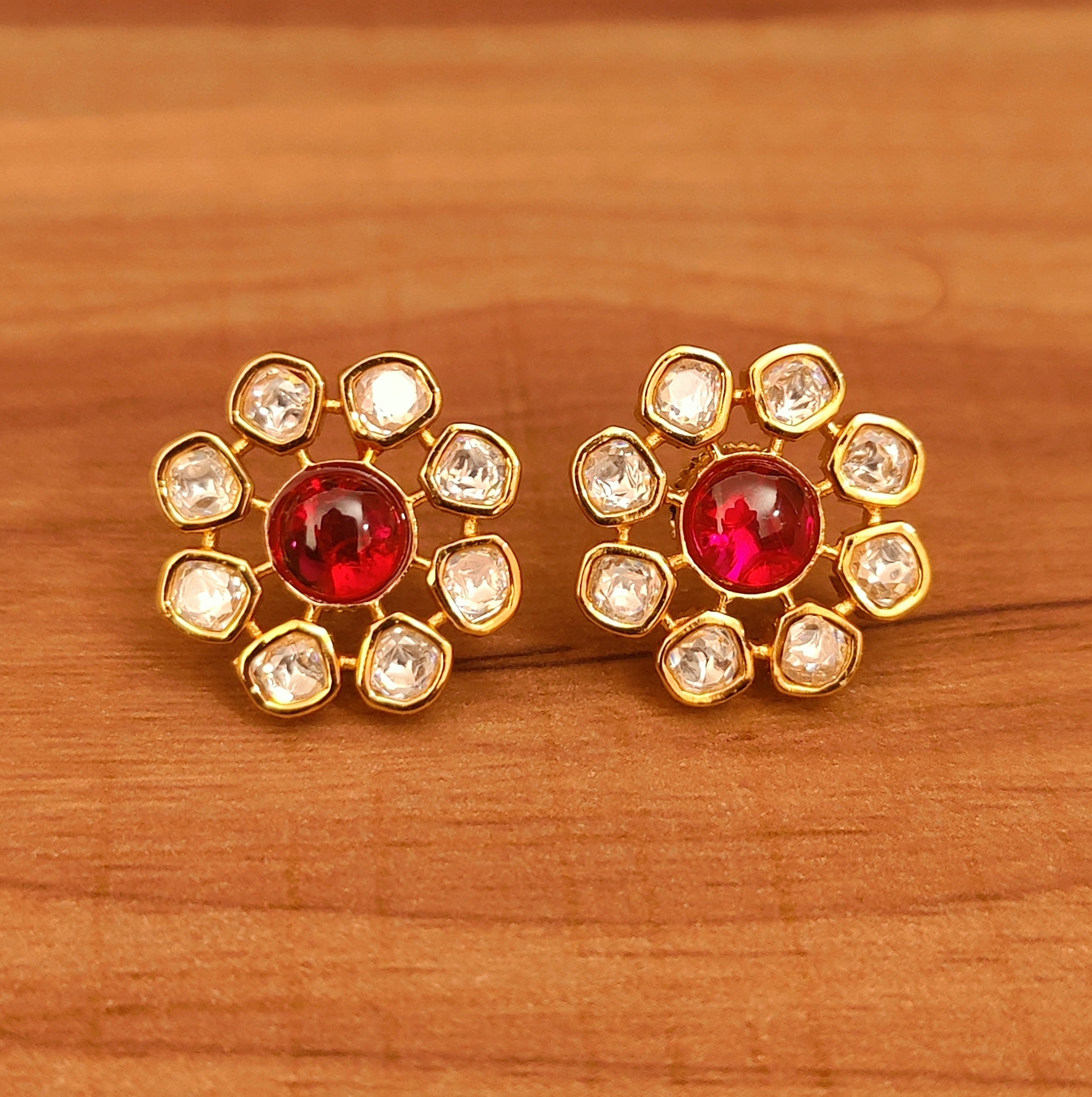 RUBY KUNDAN LOOK CZ STUDDED GOLD PLATED STUDS