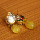 These Studs Are Handcrafted In Brass Alloy With Imitation Kundan Meenakari & Yellow Onyx Bead Of Very Fine Quality. These Artistic Yet Modern Studs Are Plated With High Quality Nickel Free Gold Rhodium. The Earrings Are Very Light In Weight.