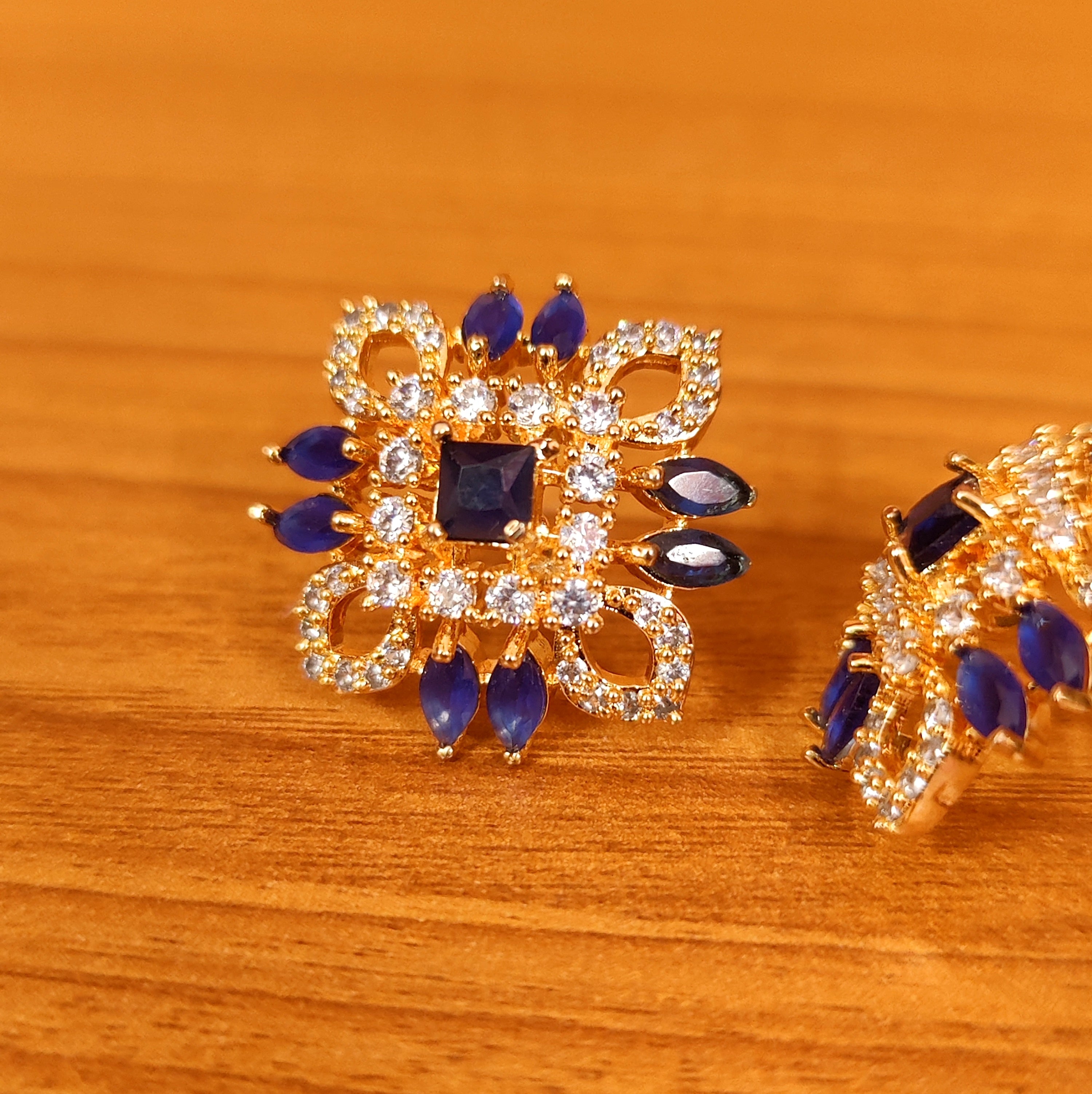 BLUE SAPPHIRE CZ STUDDED DIAMOND LOOK STUDS