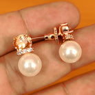 CITRINE STONE ROSE GOLD PEARL STUDS