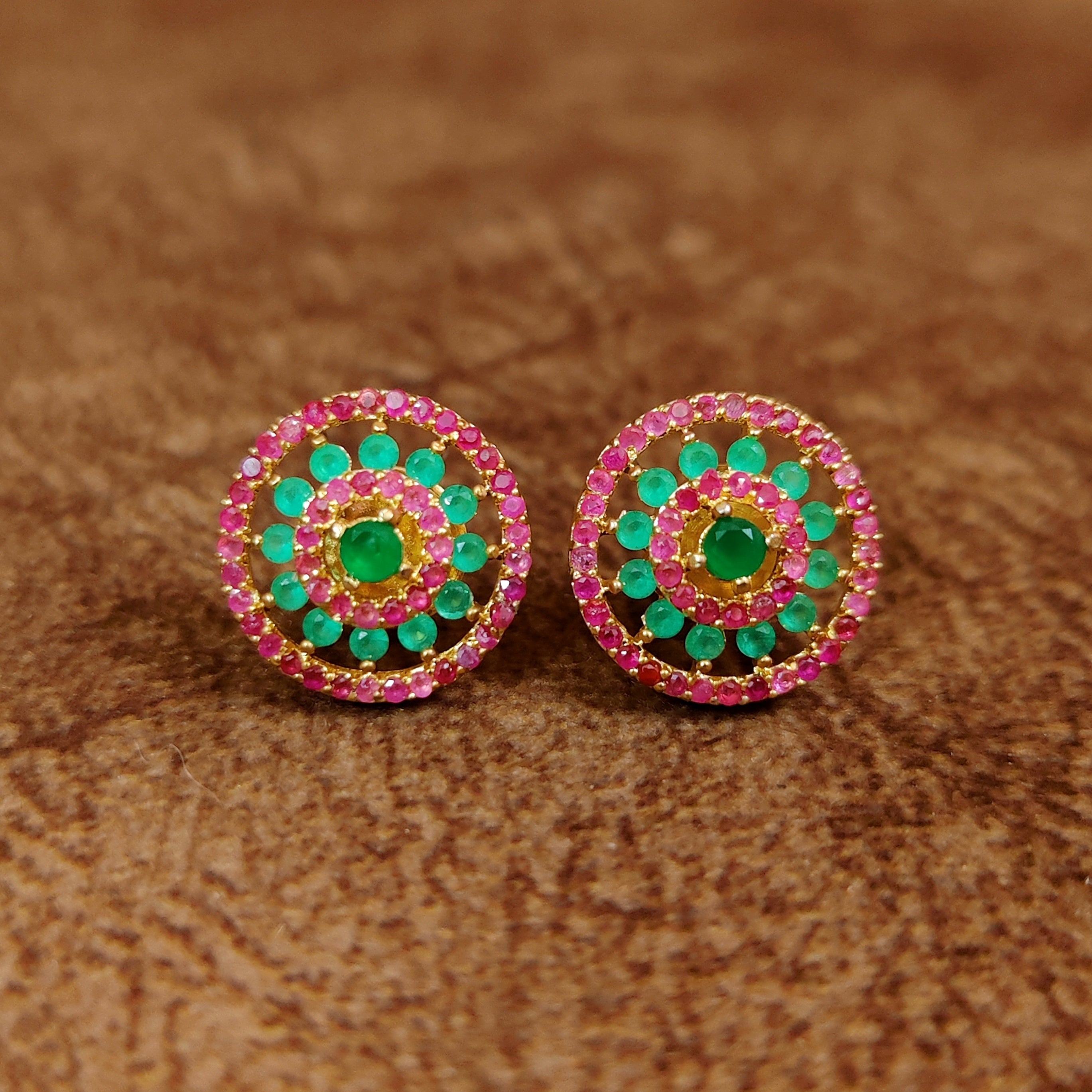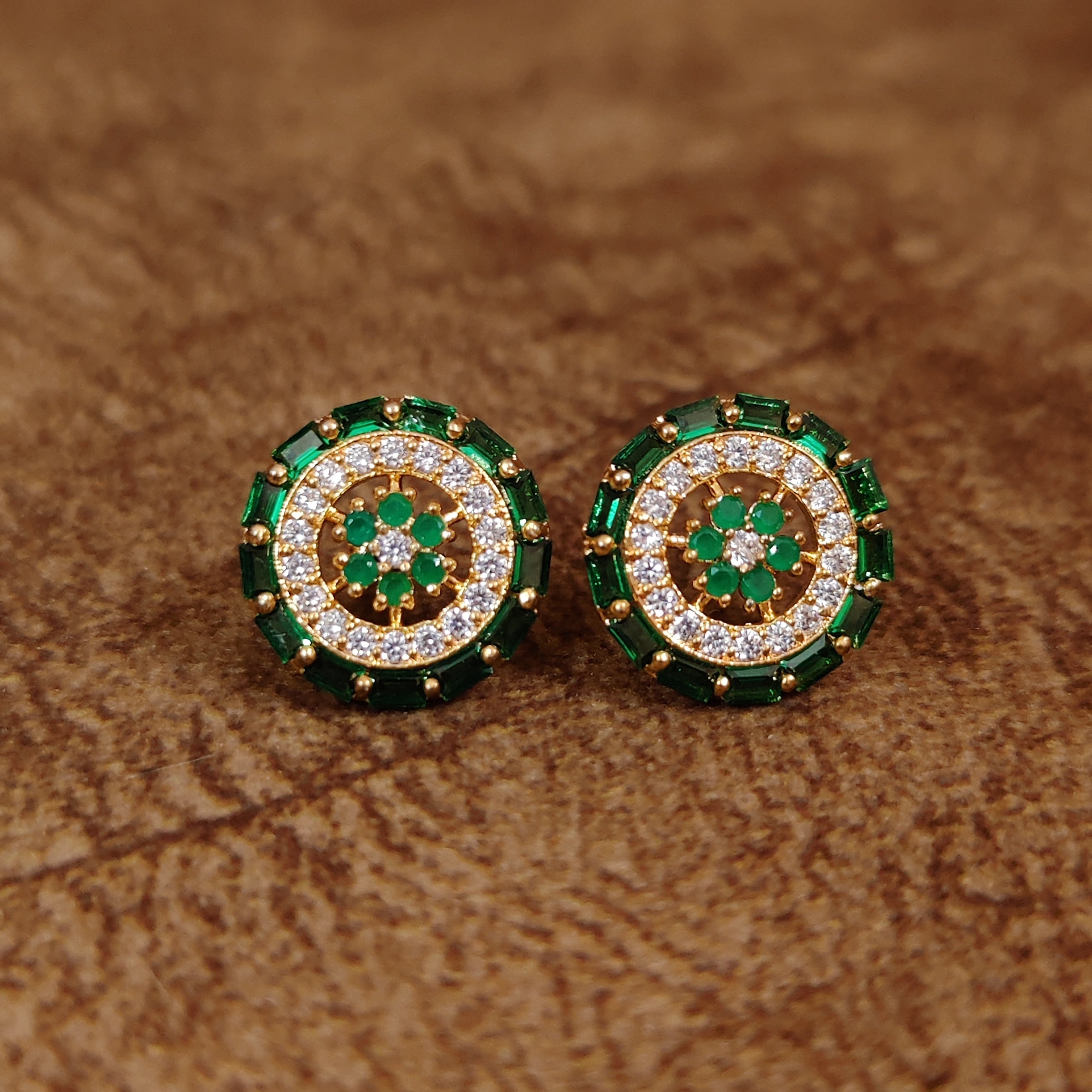 EMERALD COLOUR CZ STUDDED ROUND STUDS