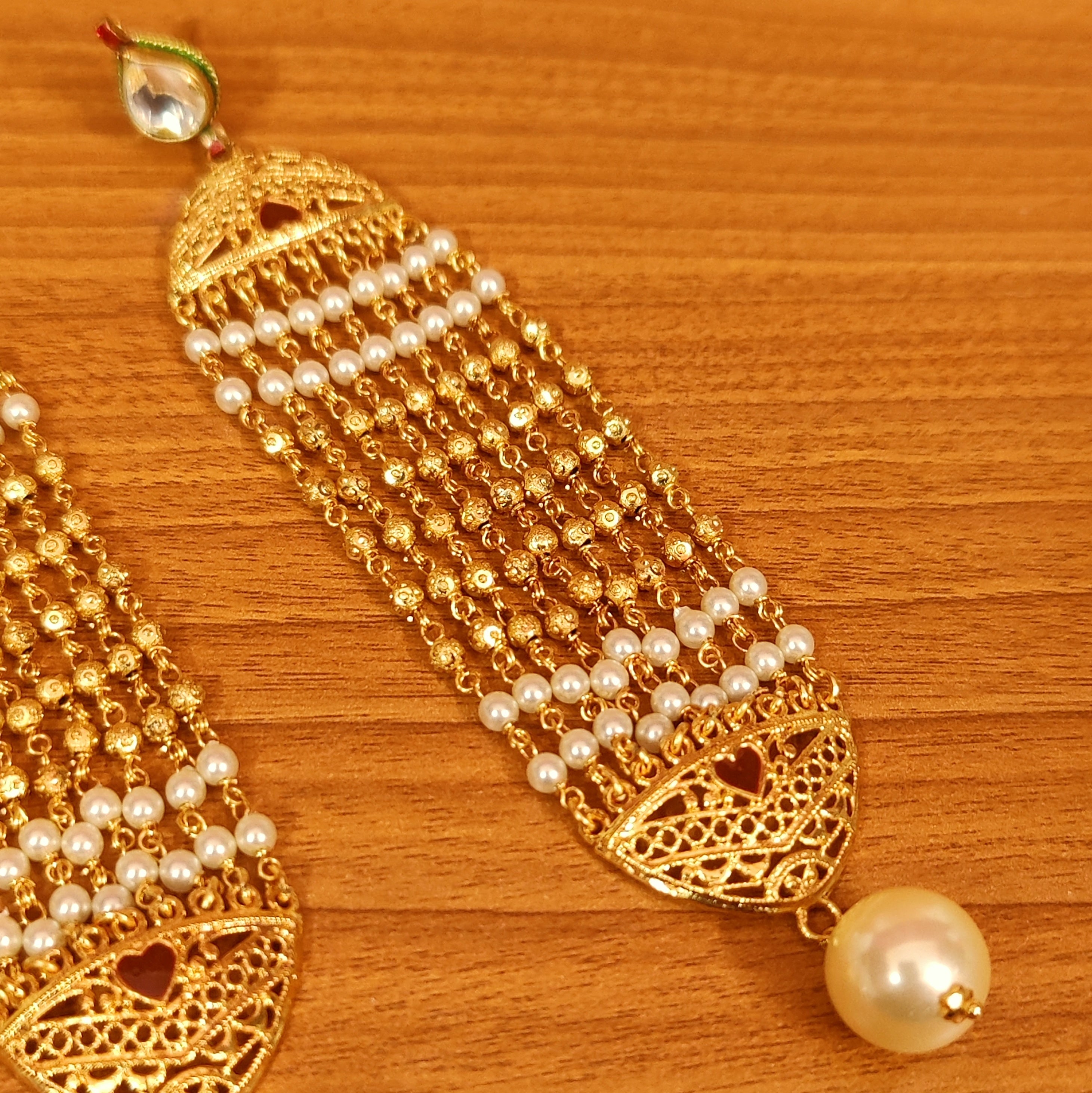 KUNDAN POLKI GOLD & PEARL BEADED EARRINGS