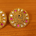 MATT GOLD LOOK KUNDAN & RUBY PEACOCK BIG STUDS