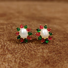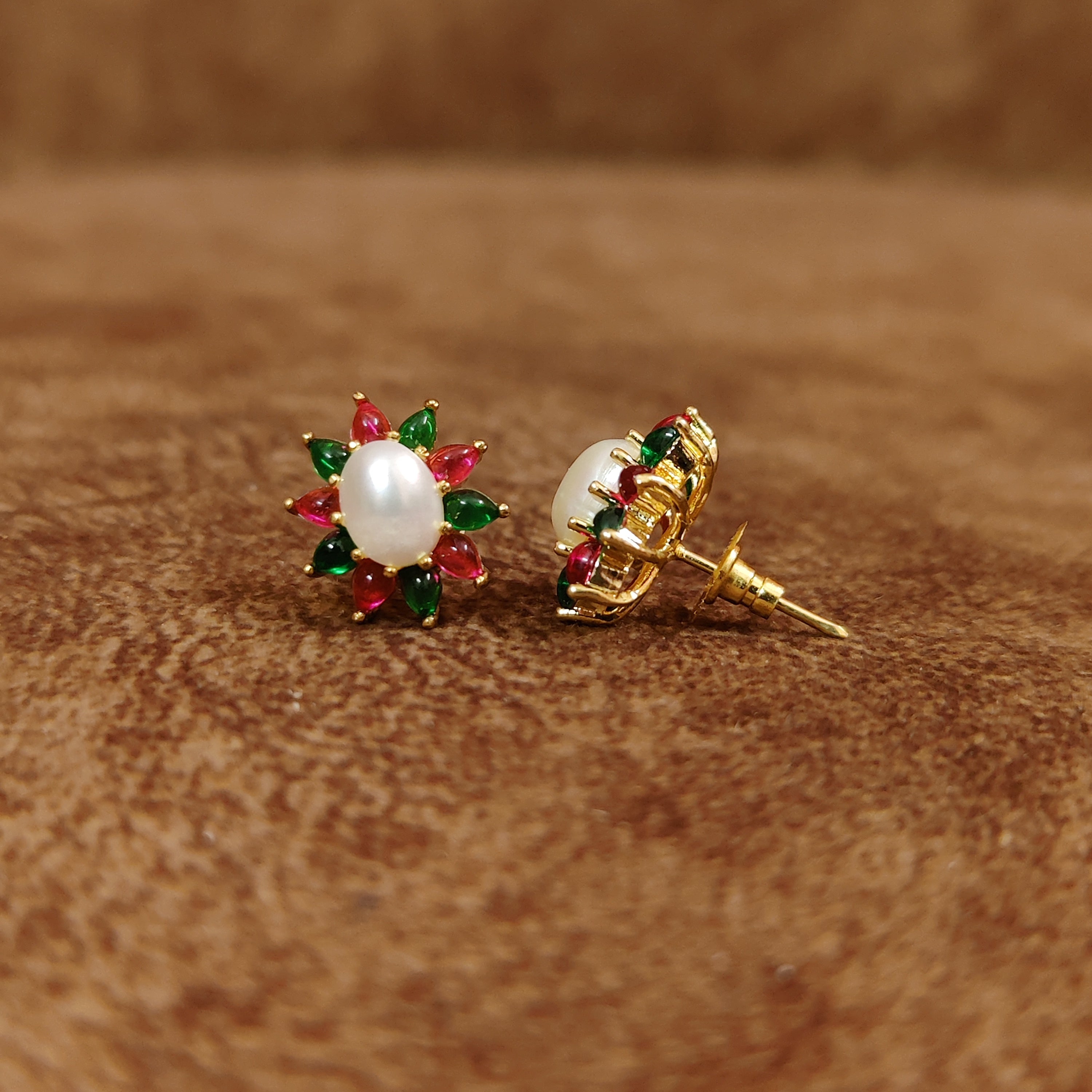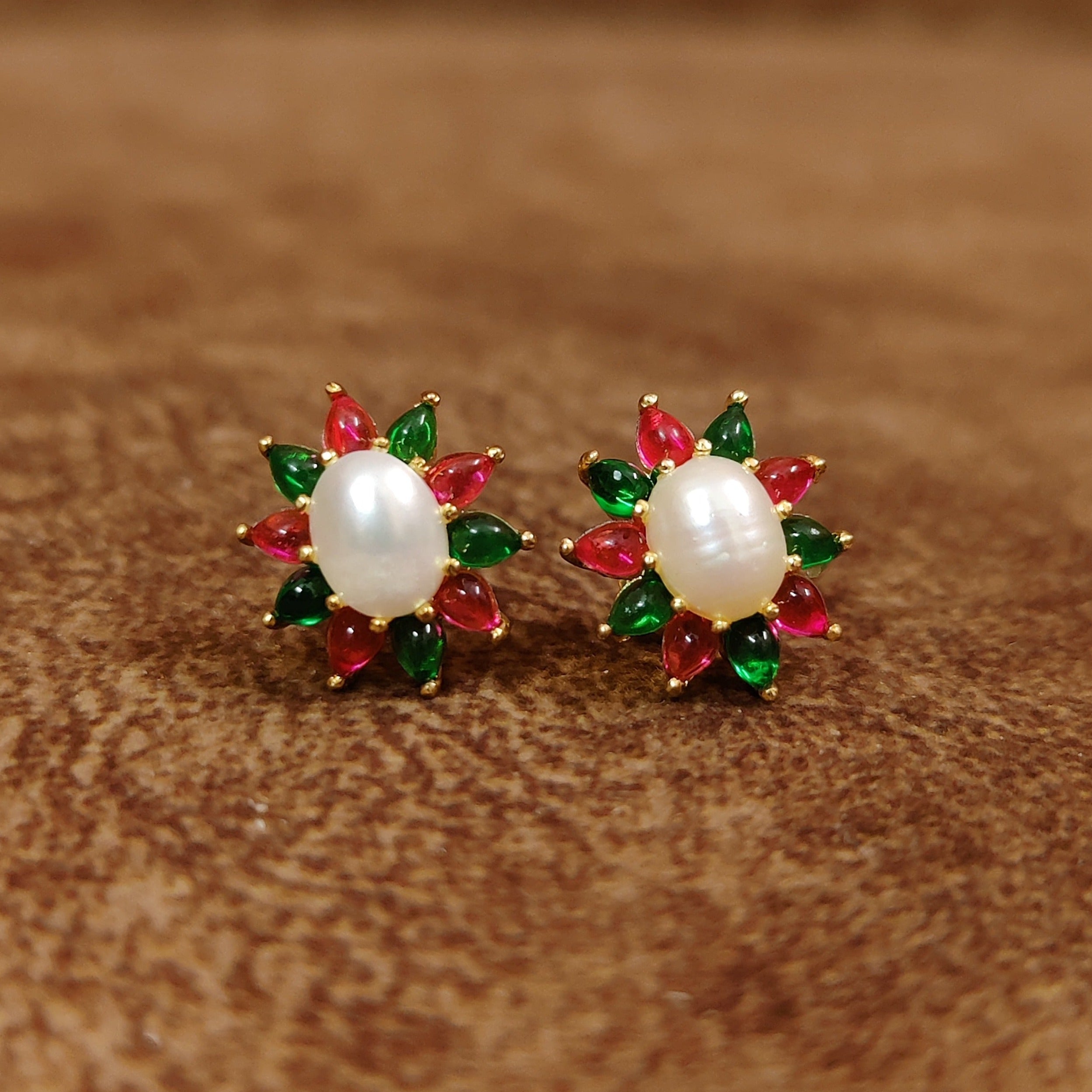 Discover the perfect combination of elegance and affordability with our multicolour stones & pearl Gold Plated Studs. The trending design features a delicate emerald green, pink ruby stone and semi-precious pearls, all set in a lightweight and comfortable gold plated setting. Perfect for daily wear, these studs are a must-have addition to your jewelry collection!