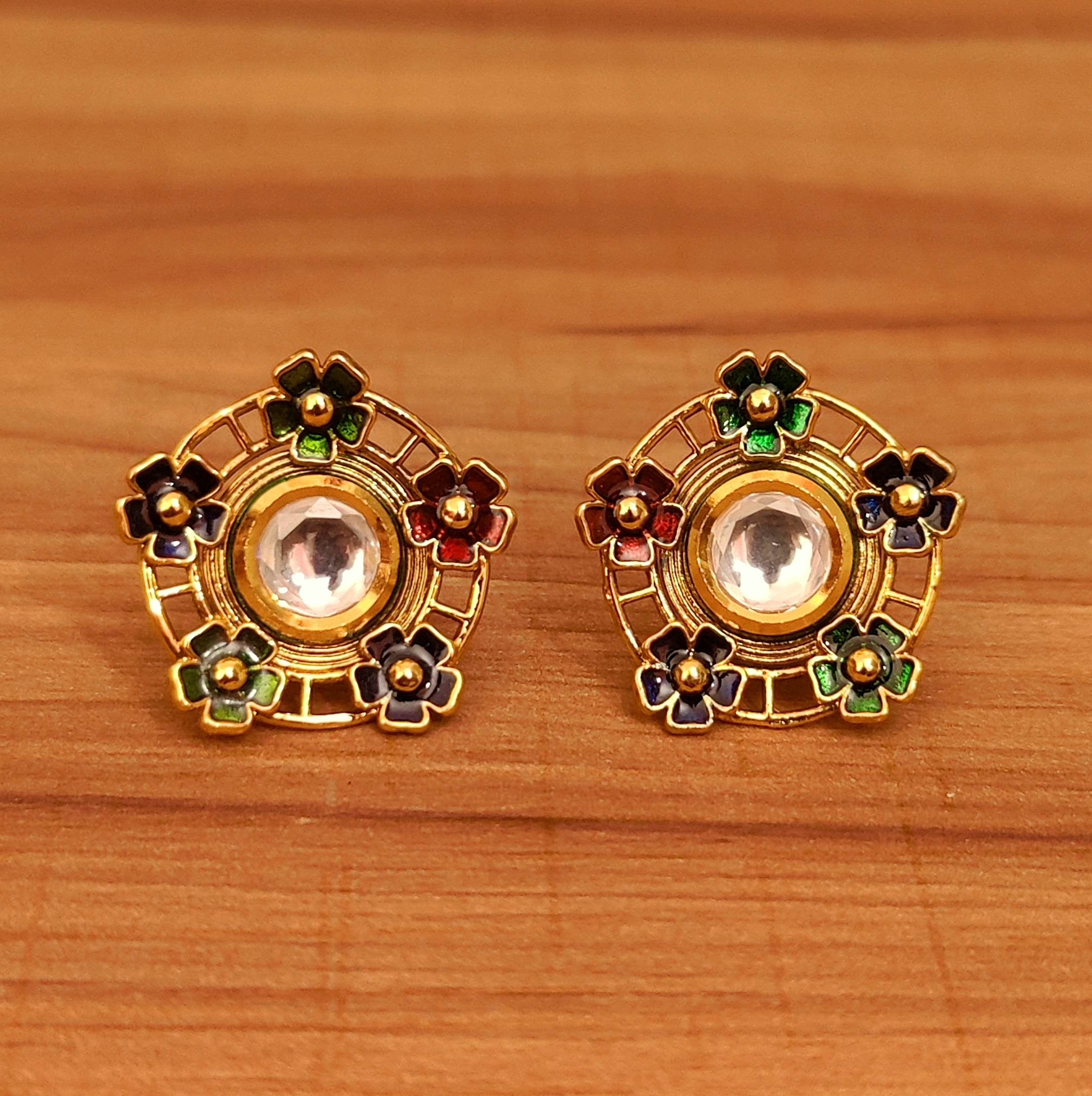 MULTICOLOUR KUNDAN MEENAKARI FLOWER STUDS