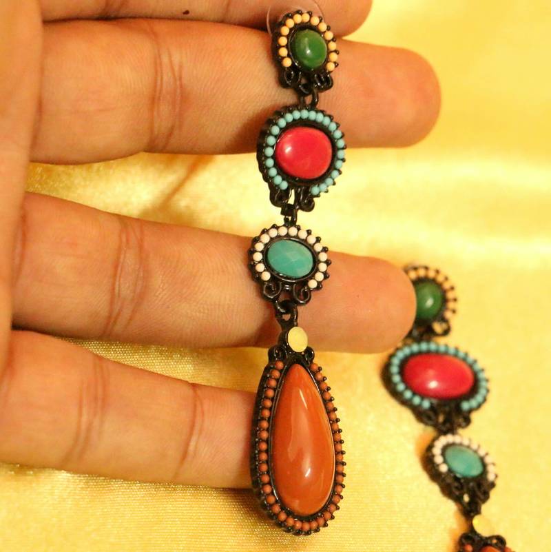 These beautiful earrings are handcrafted in german silver alloy with imitation crystal work of very fine quality. These earrings are coated with polish which give them a unique look . An absolutely stunning piece to own and are very light in weight.