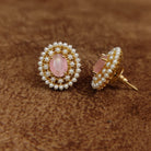 Elevate your style with our PINK ONYX & PEARL OVAL STUDS! The stunning combination of pink onyx and small pearls will add a touch of elegance to any outfit. These light weight, gold plated earrings feature a trendy design with a modern twist. Make a statement with these must-have accessories!